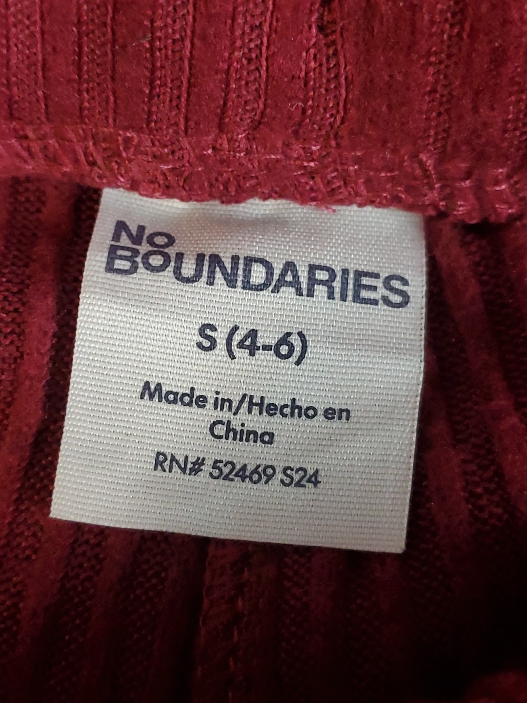 No Boundaries Women's Ribbed Flare Lettuce Hem Pants Size Small Burgundy