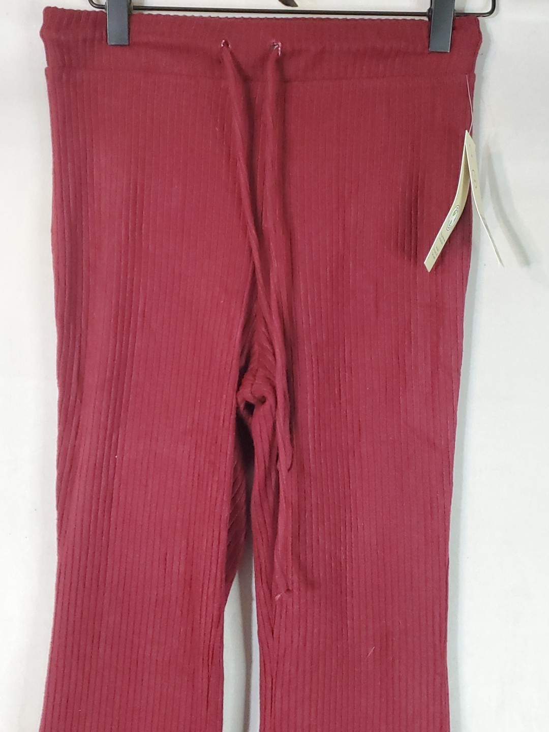 как выглядит No Boundaries Womens Ribbed Flare Lettuce Hem Pants Size Small Burgundy фото
