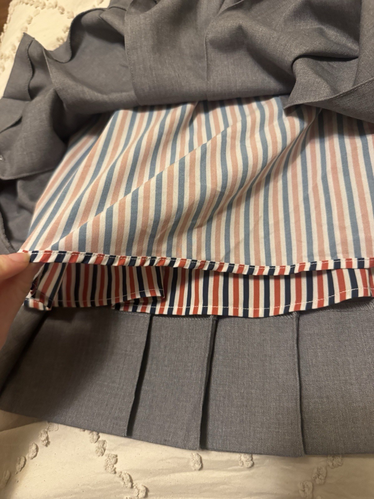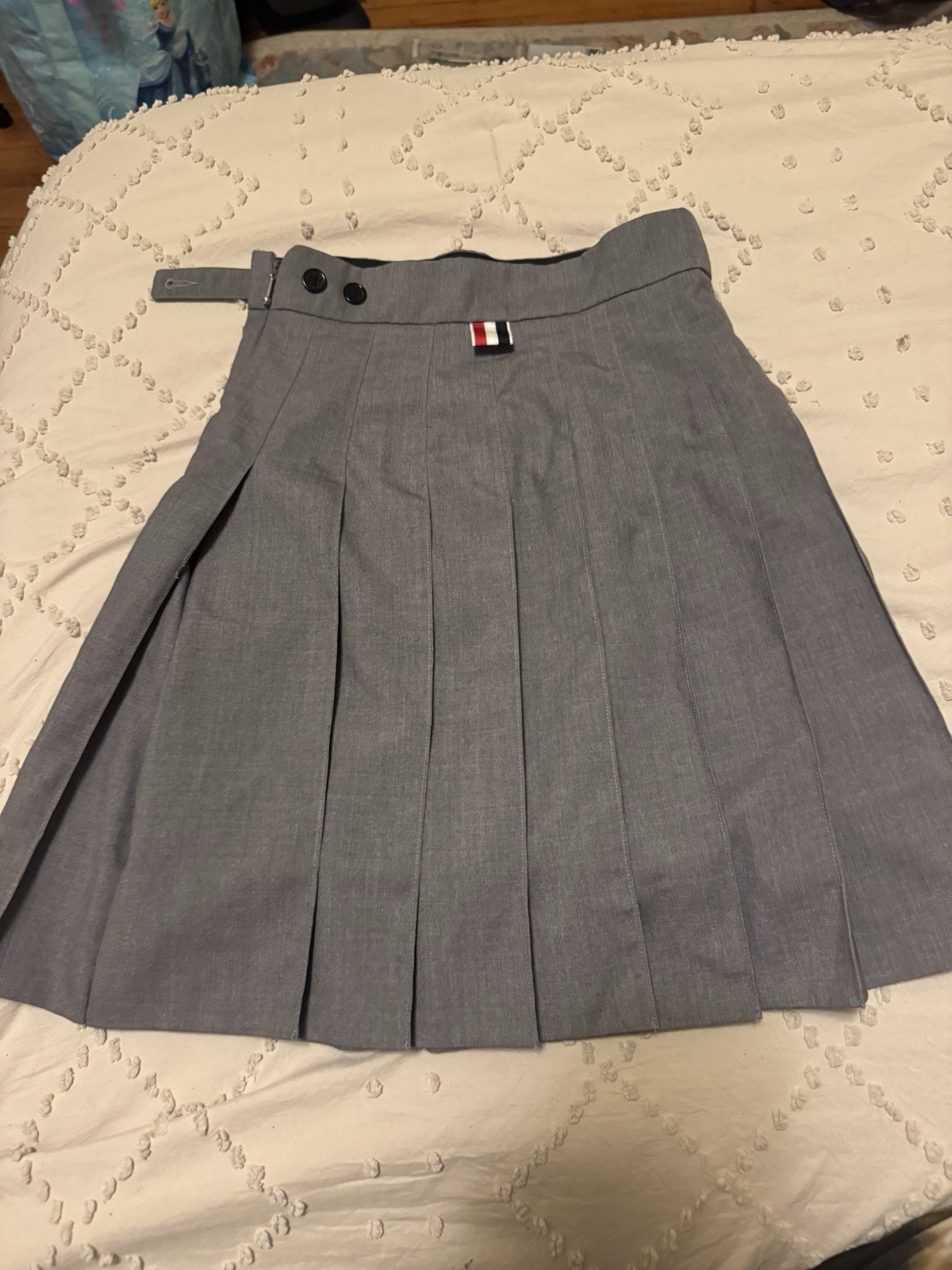 как выглядит Thom Browne Gray Asymmetrical Pleated Mini Skirt фото