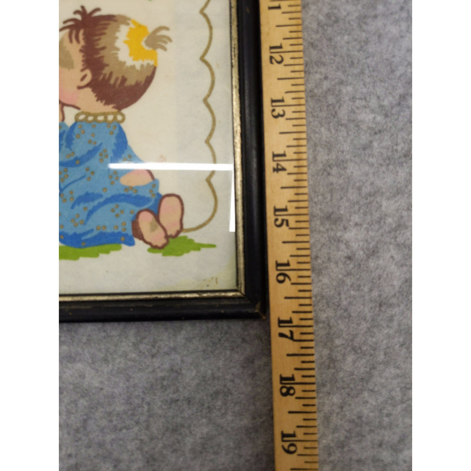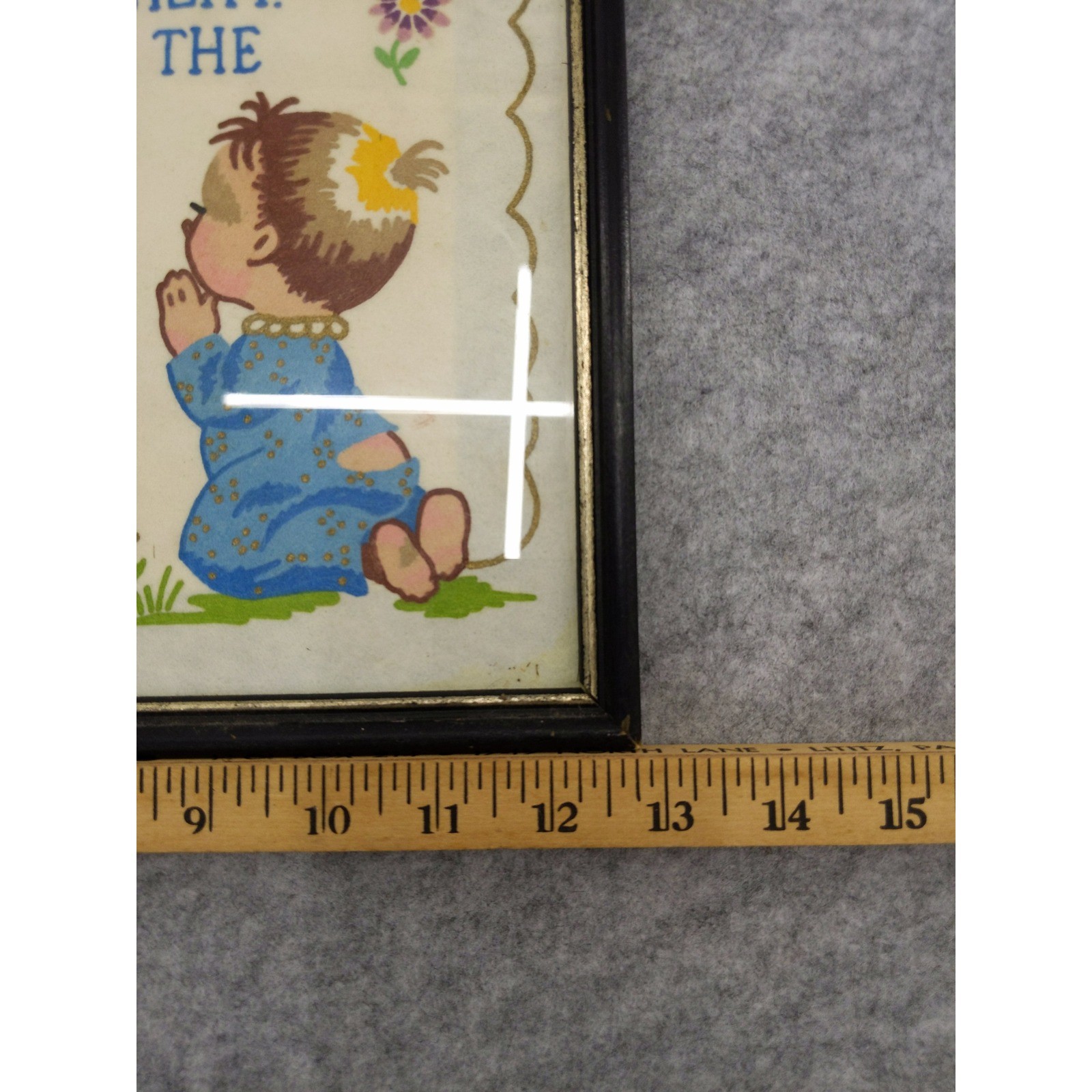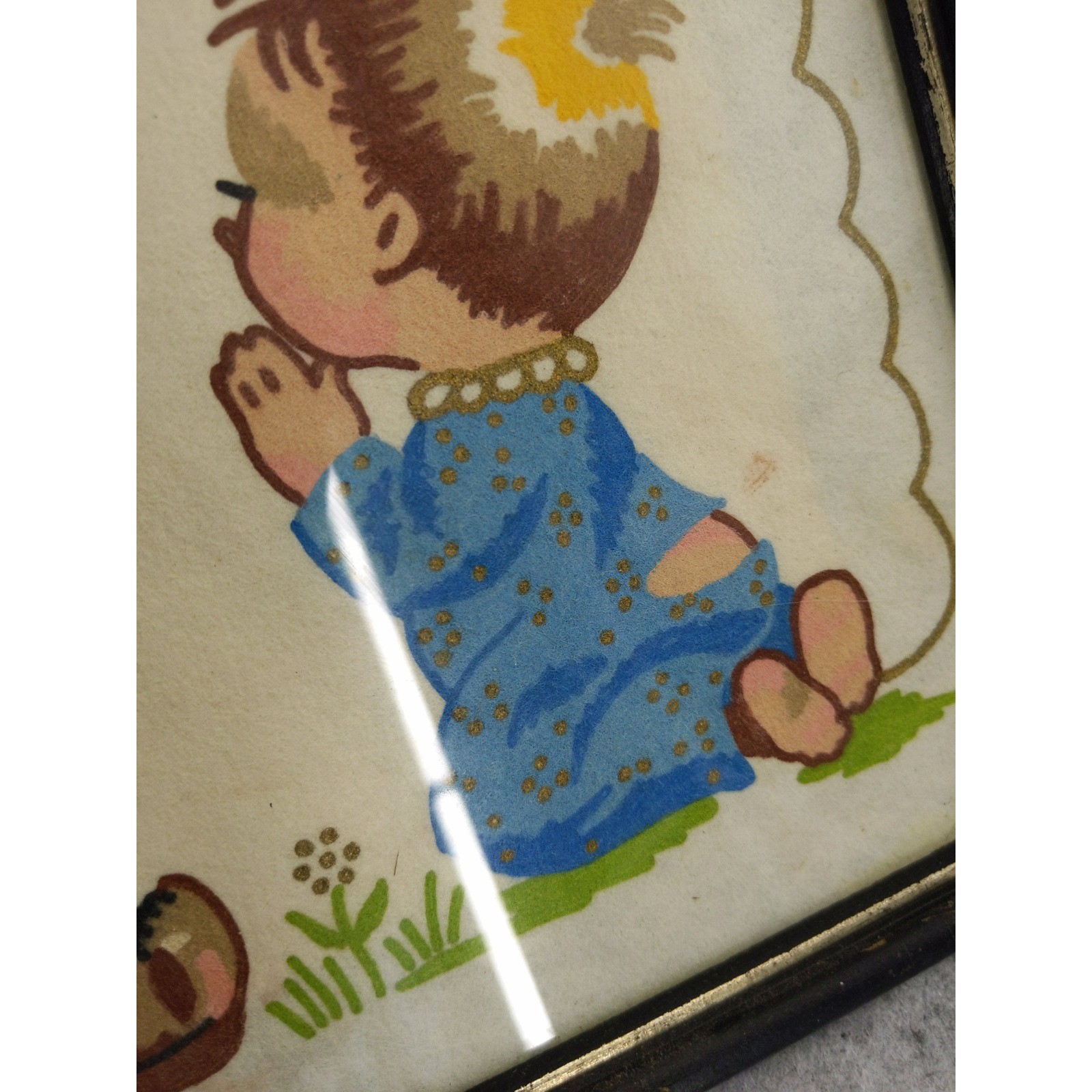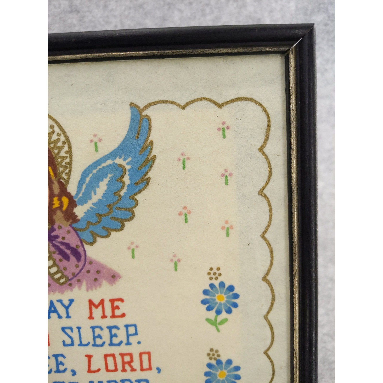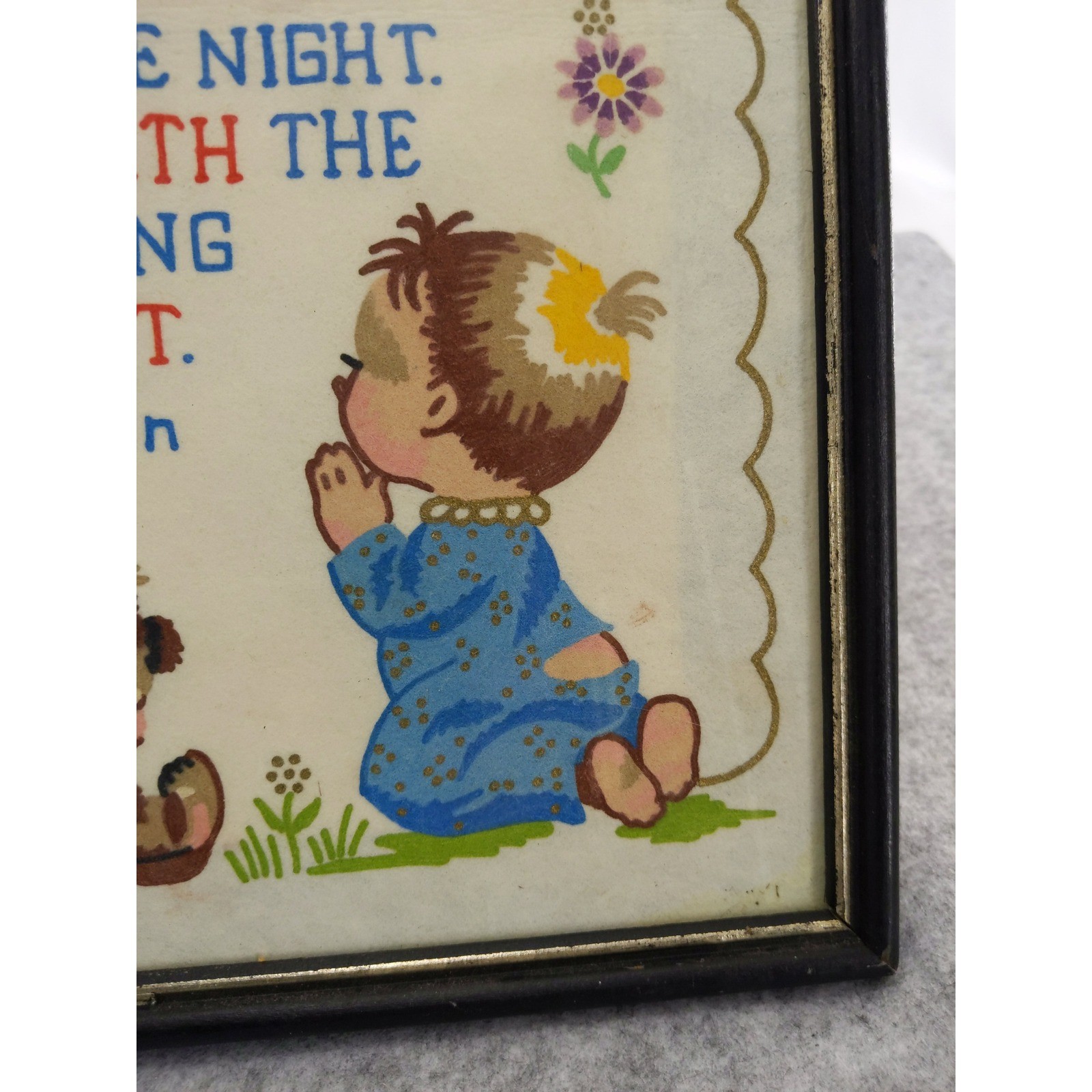 Vtg Framed Nursery Prayer Wall Art Painted Felt Multicolor Angel Children