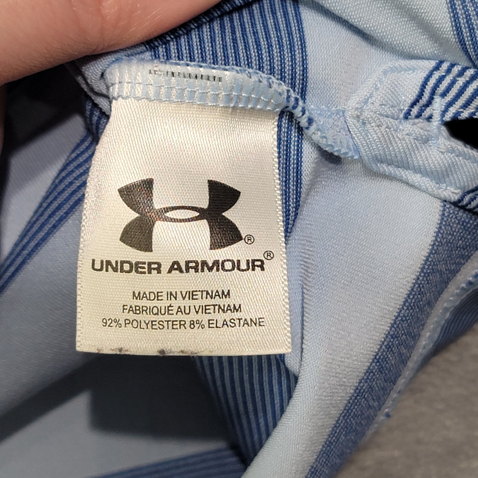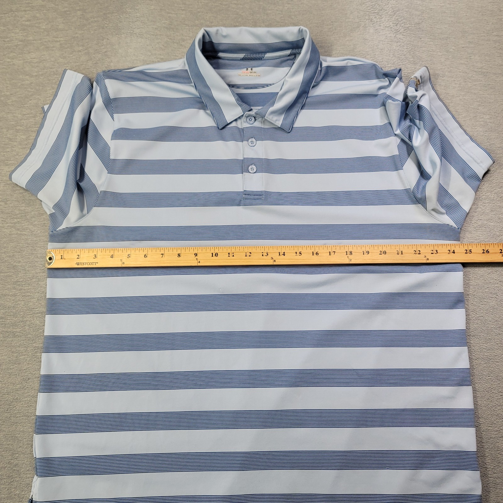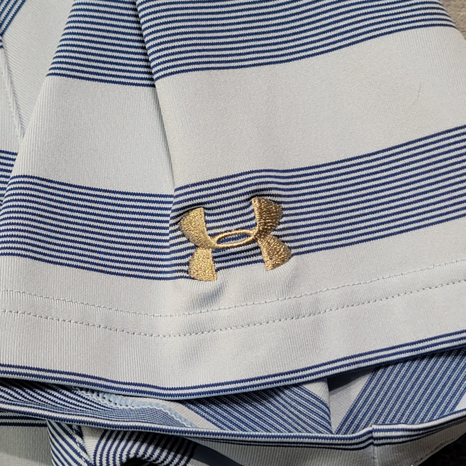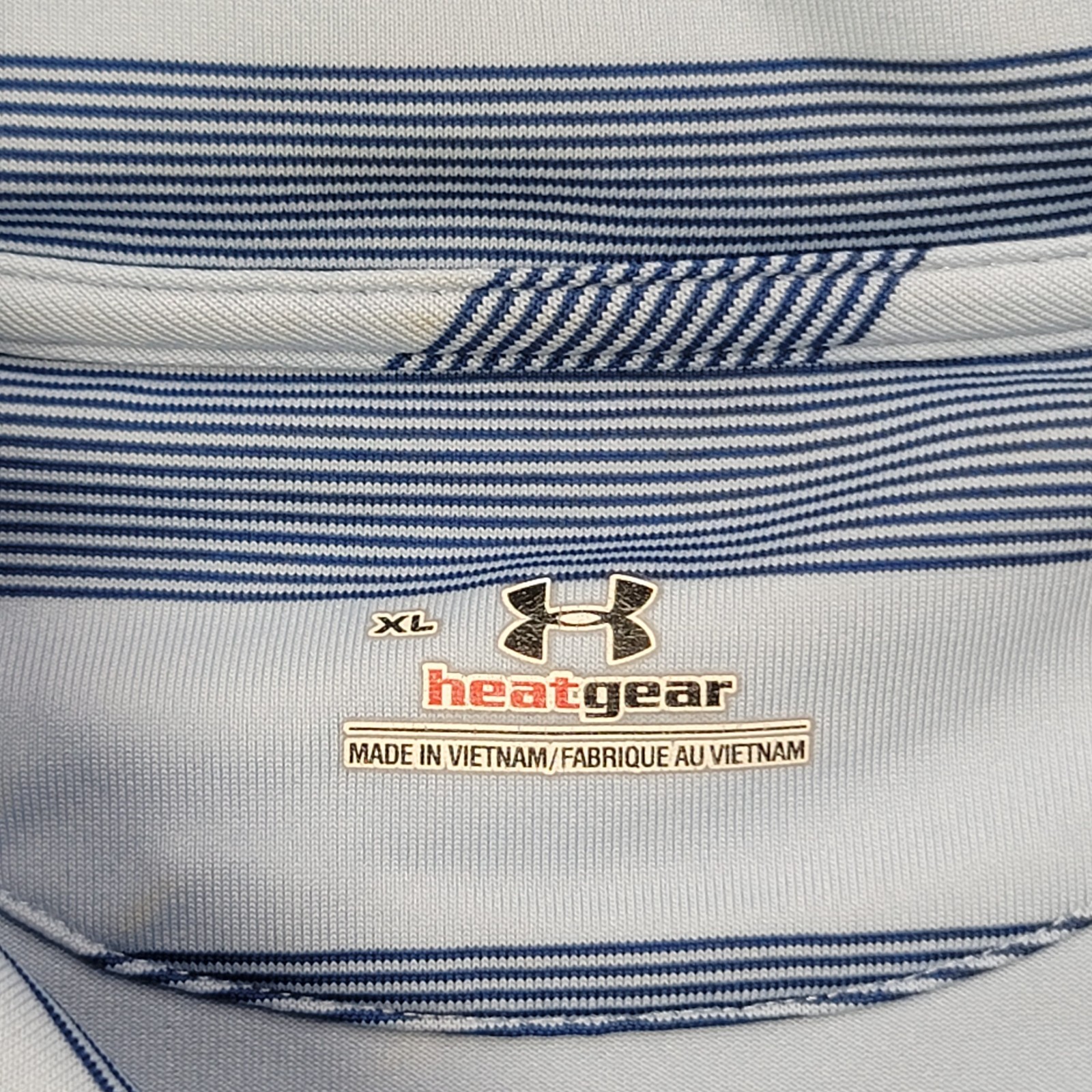Under Armour Polo Shirt Mens XL Blue Striped Heat Gear Performance Strech Golf