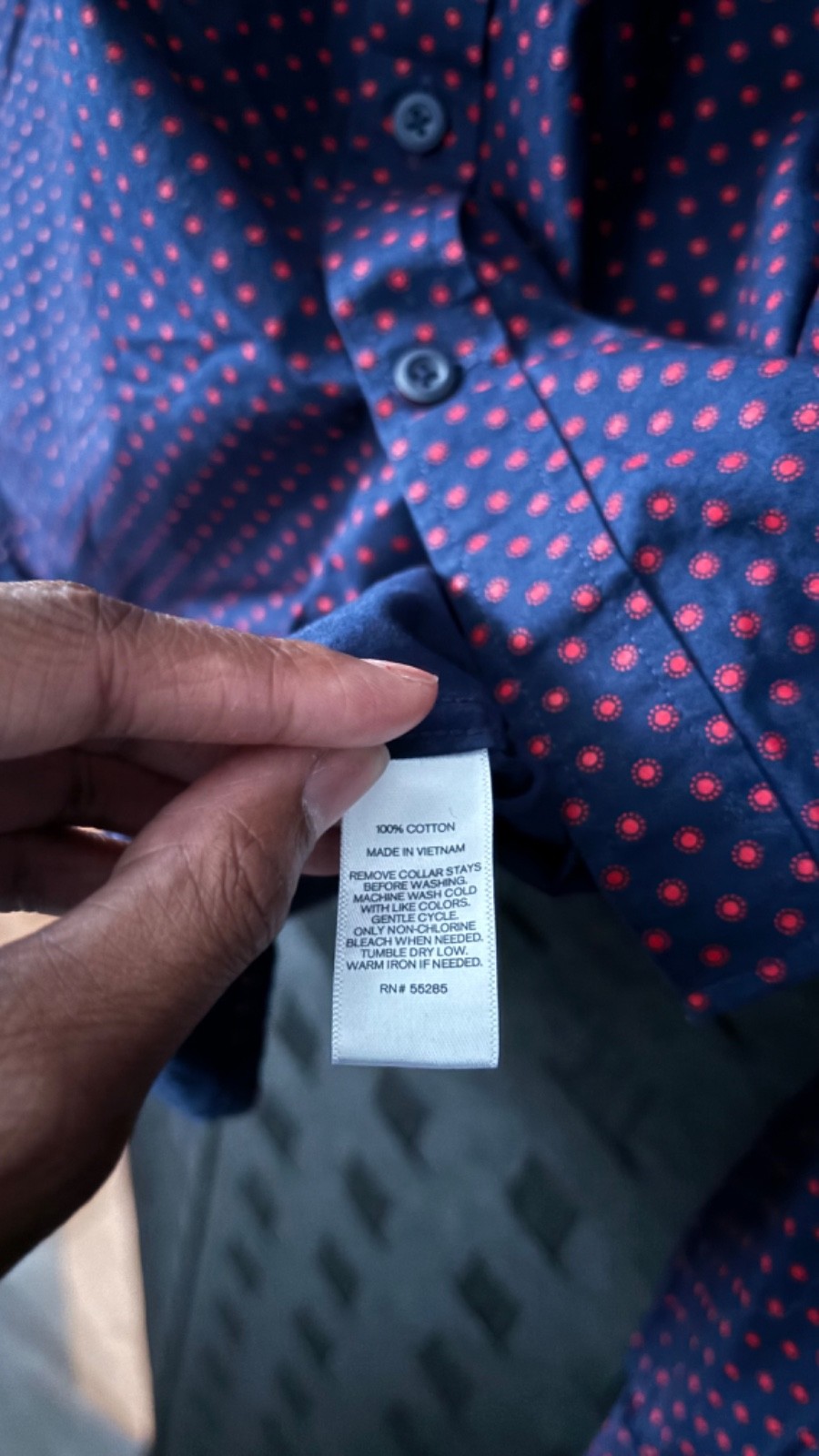 как выглядит Express Mens Large Blue and Red Floral Spotted Fitted Long Sleeve Dress Shirt фото