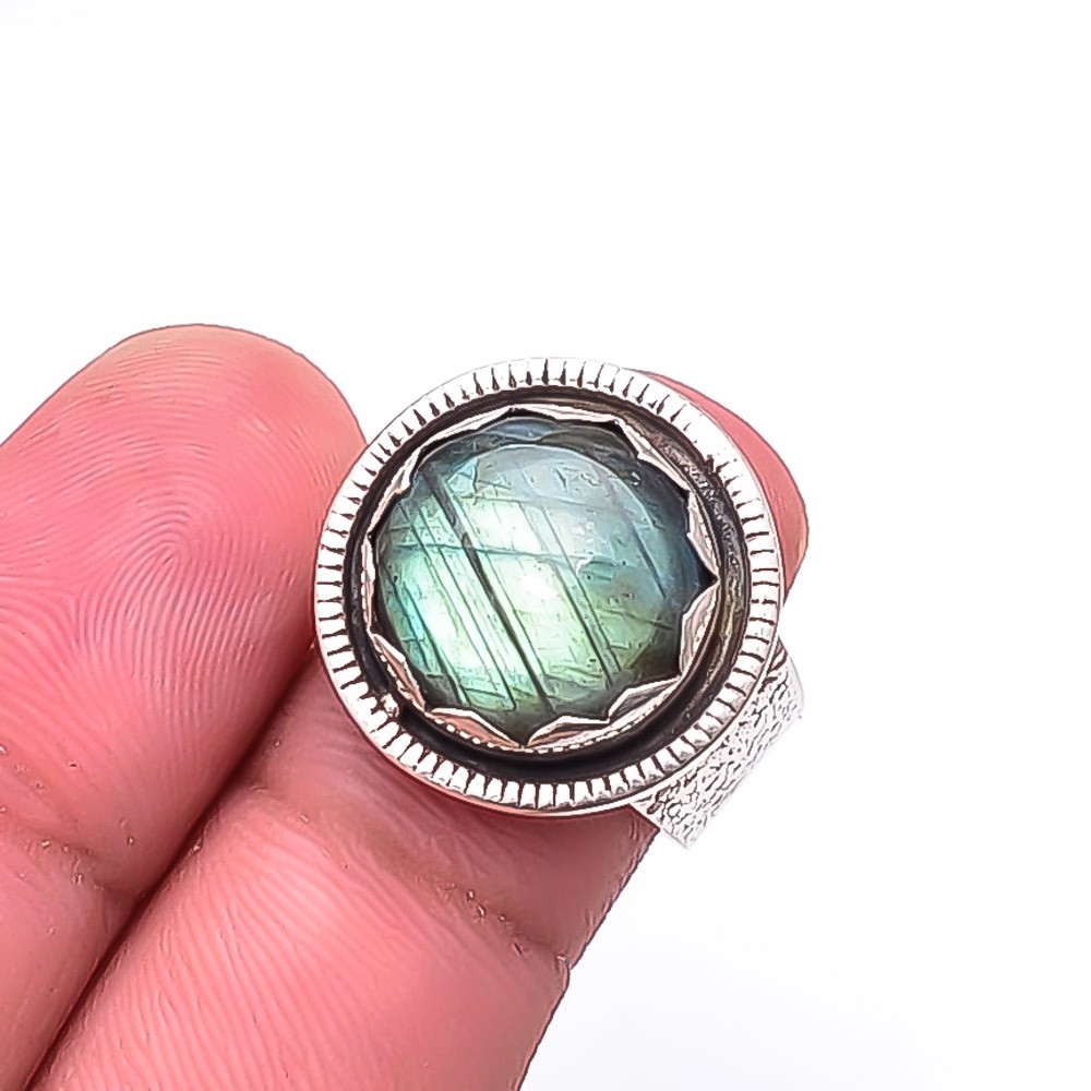 Labradorite - Madagascar Oxidised 925 Sterling Silver Ring S.7 R7 Christmas Gift