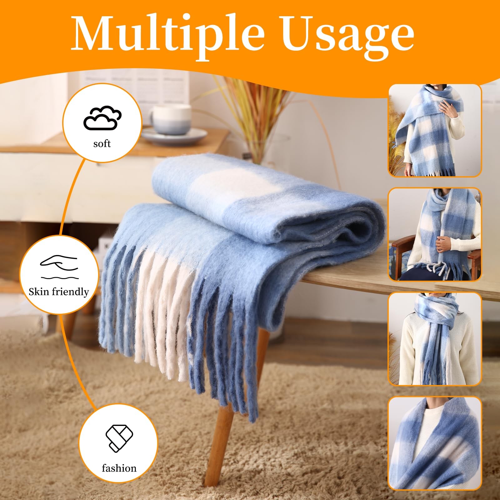 Winter Women Warm Rainbow Scarf Cold Weather Knitted Thick Blanket Long Shawl