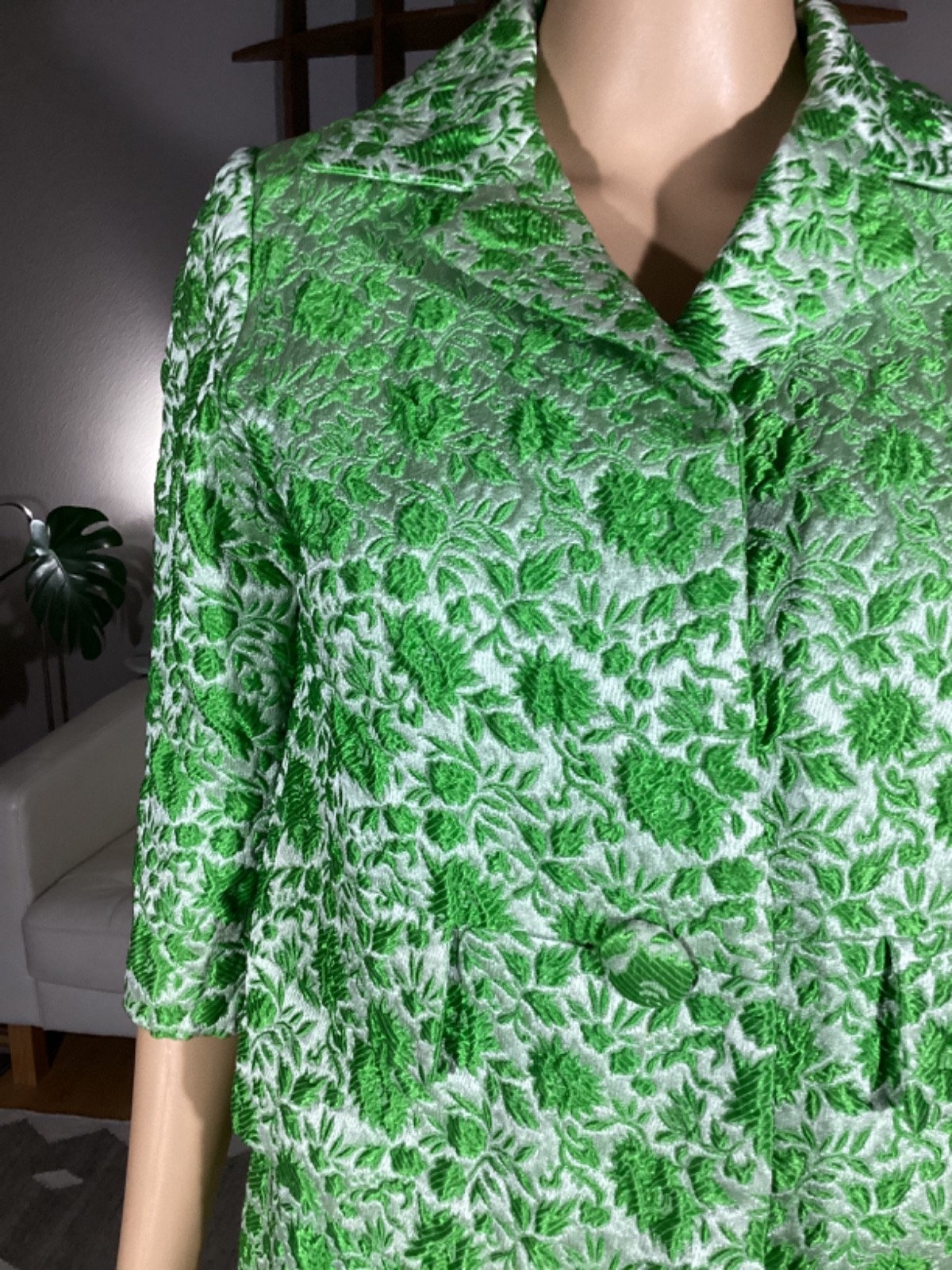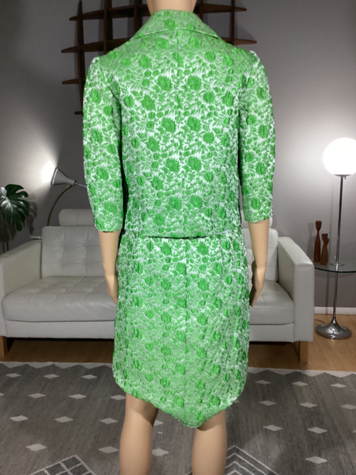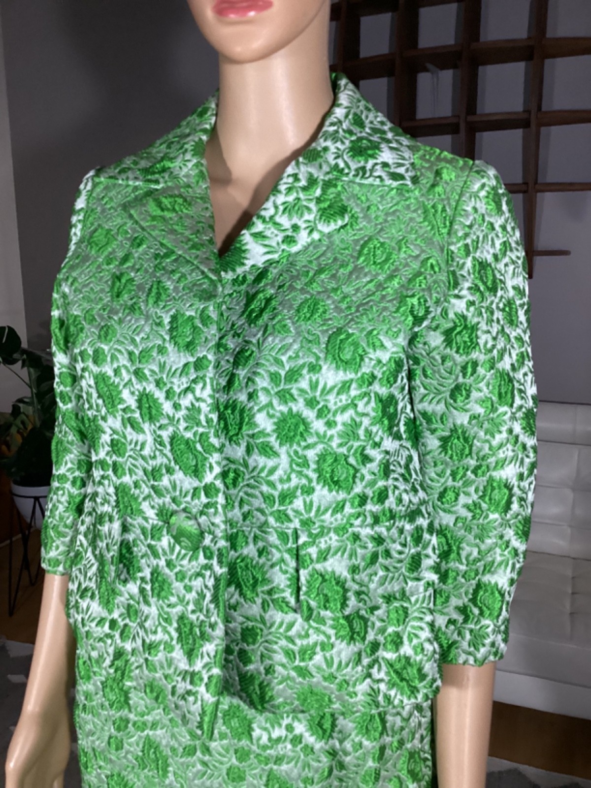 как выглядит Vintage 60s 70s Green 3-D Embroidered Skirt Jacket Suit Set фото