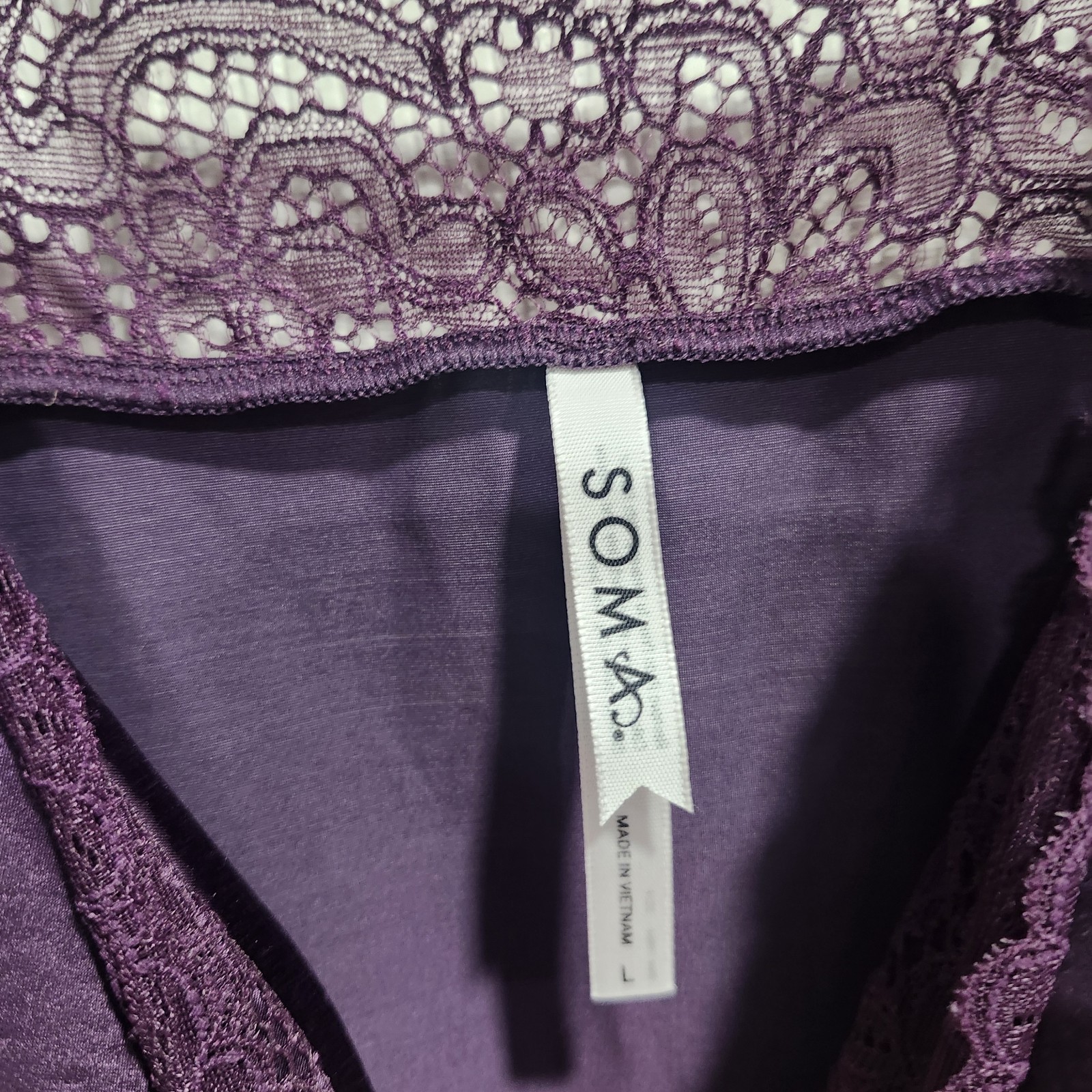 как выглядит Soma Womens L Purple Satin Camisole Lace Trim Adjustable Straps Lingerie фото