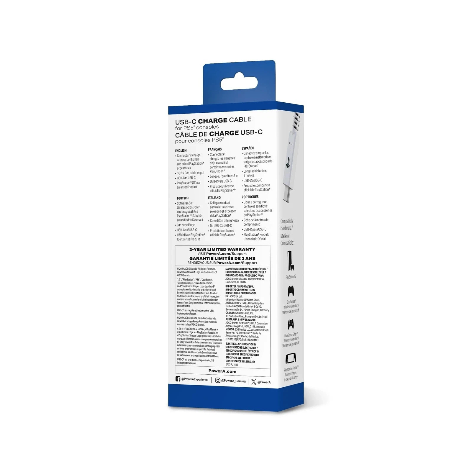 PowerA 10ft USB-C to USB-C Cable for PS5 Fast Charging Extra Long Black