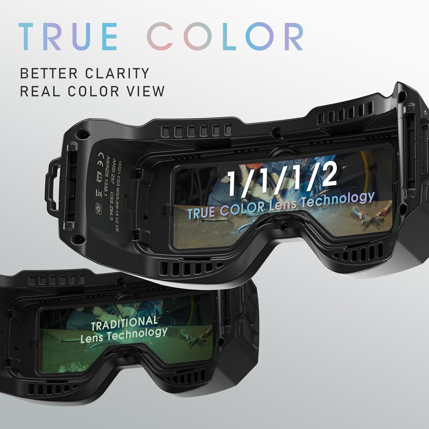 Auto Darkening Welding Goggles Kit with LED Light, True Color Lens 2 Arc Sensors