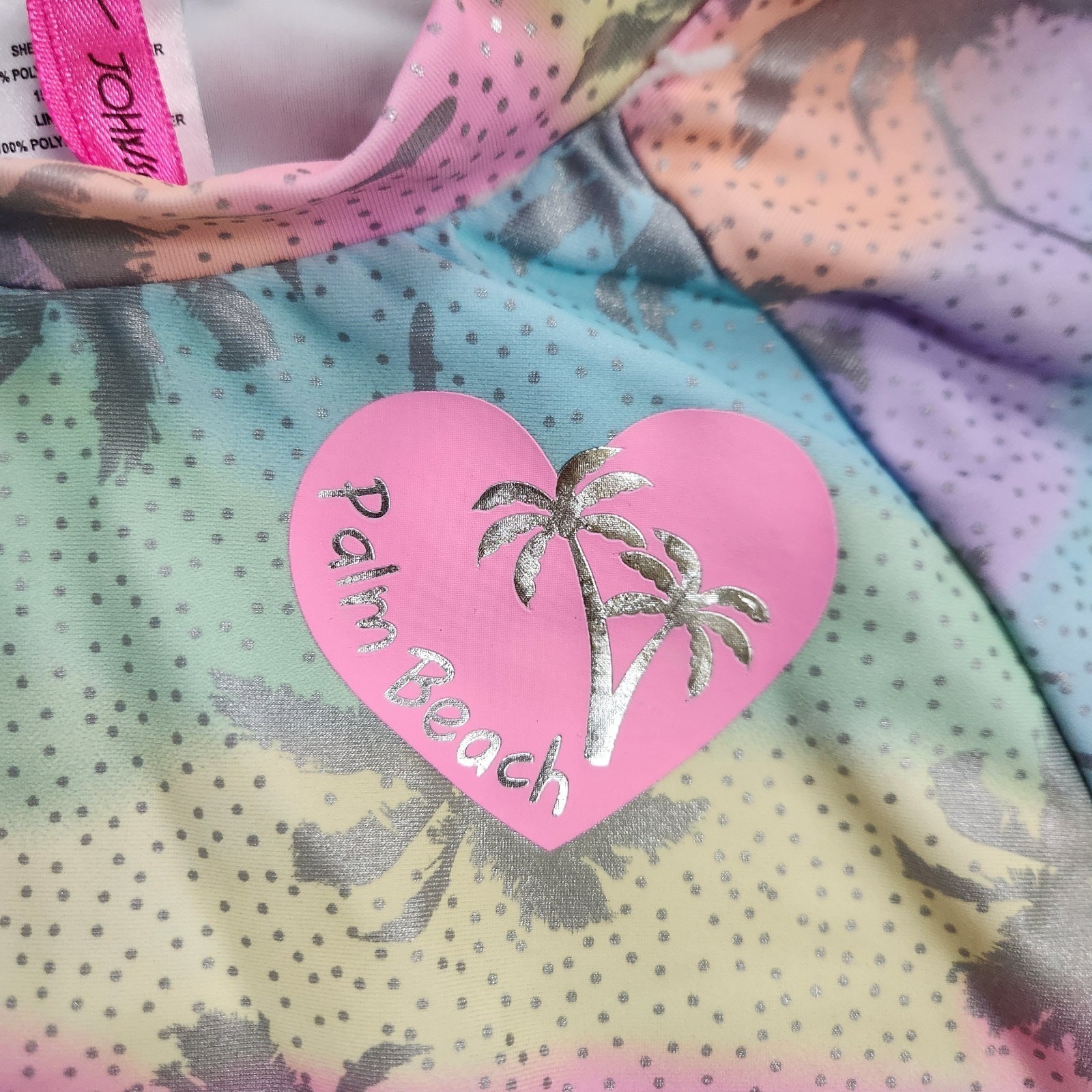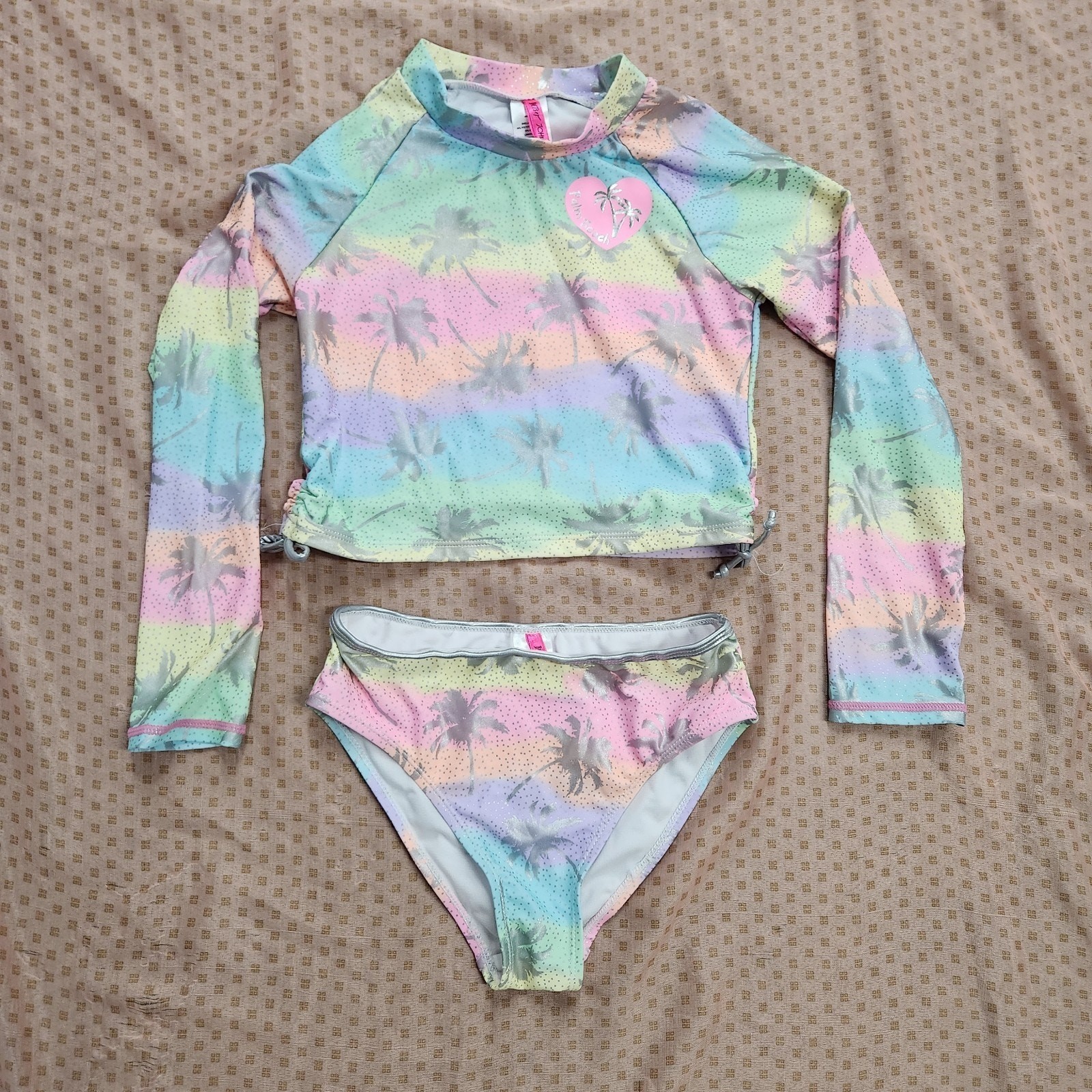 Betsey Johnson 'Palm Beach' Girls Sz 12 Rash Guard 2 Pc Swimsuit Beach Tankini