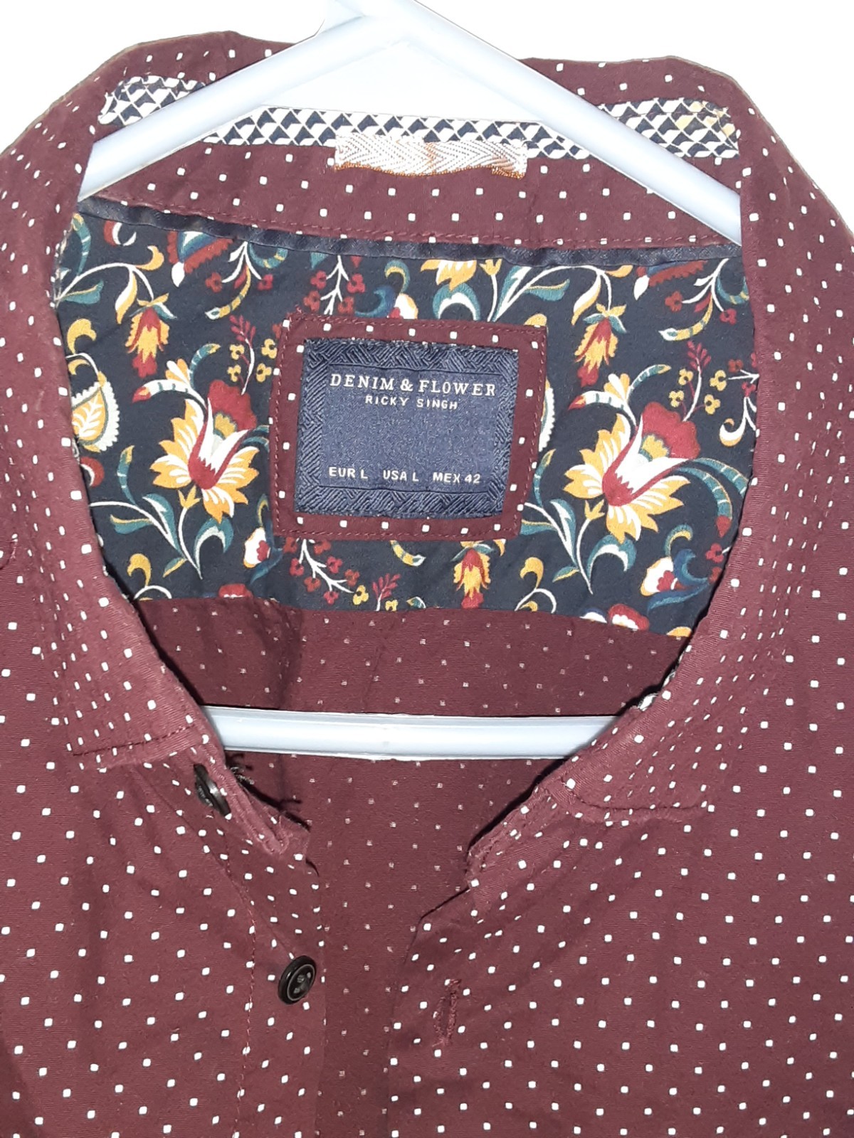 Ricky Singh Denim Flower Large Red/White 100 Cotton Button Down Shirt