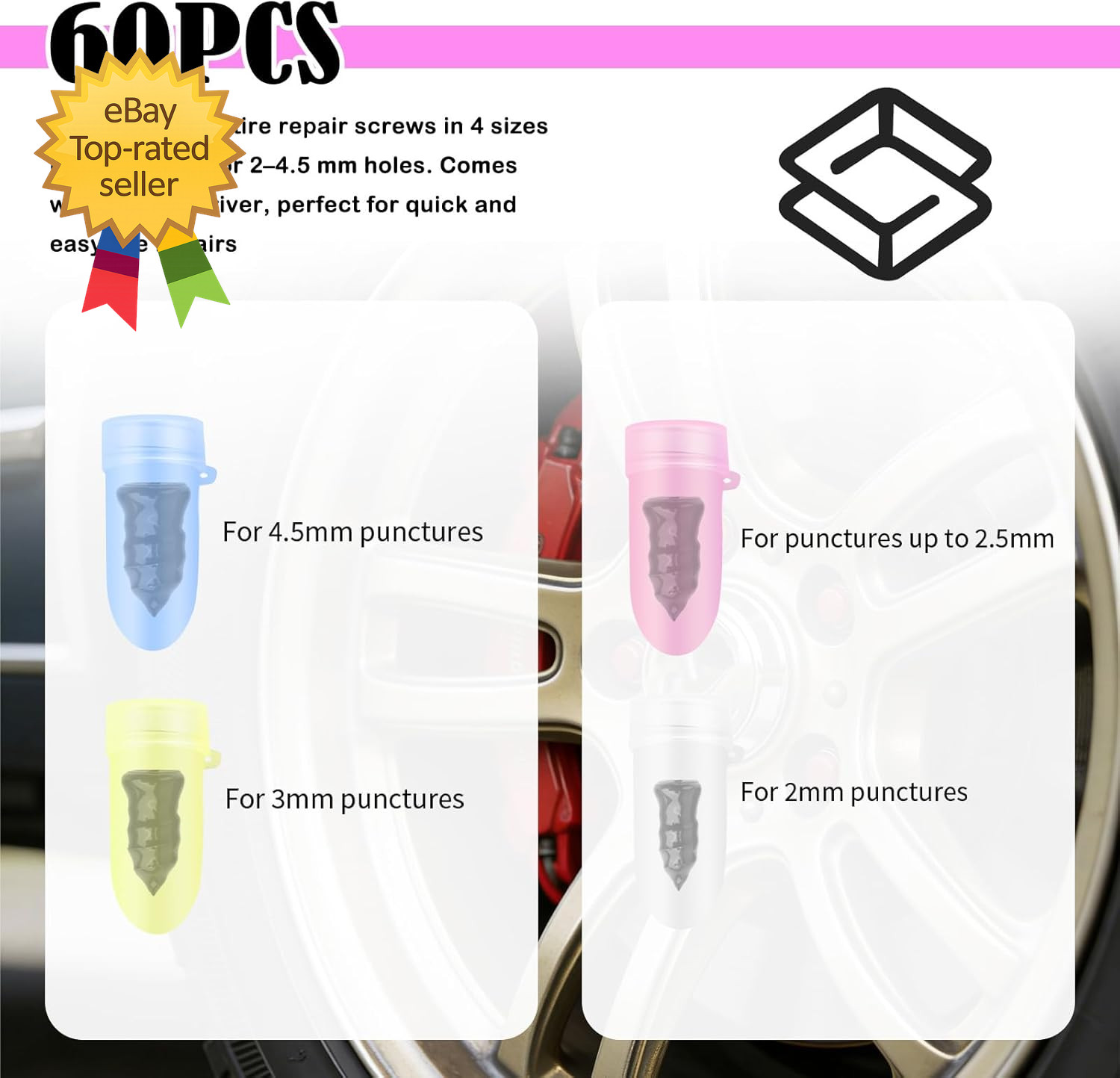 2026 Upgraded 60PCS Screw in Tire Plugs Self Service Tire Plugs Kit with Screwdr