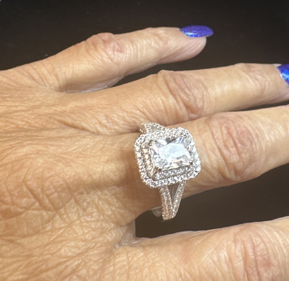 как выглядит 925 STERLING SILVER RECTANGULAR CZ Ring With Small Cubic Zirconias. SIZE 7 фото
