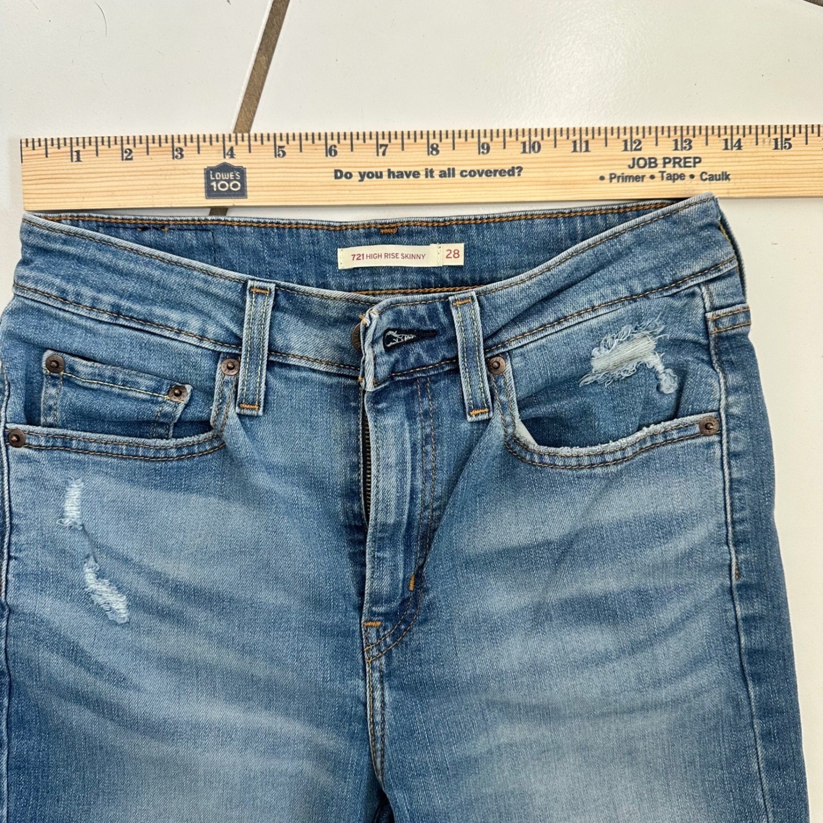 как выглядит Levi Strauss 721 High Rise Skinny Jeans Womens Size 28 Distressed Light Wash фото