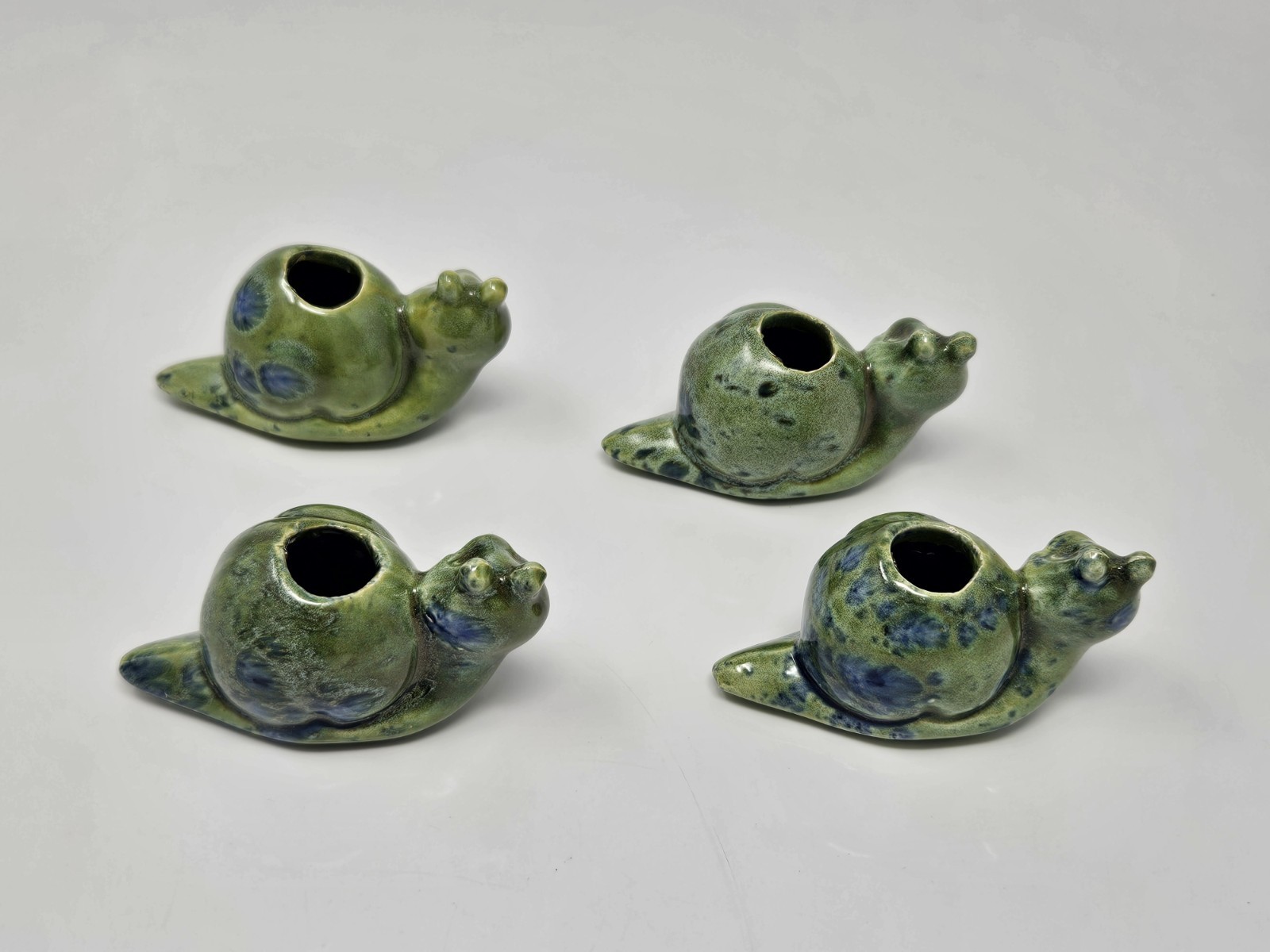 Set of 4 Vintage Green Snails Handmade Glazed Ceramic Macrame Beads Large Hole