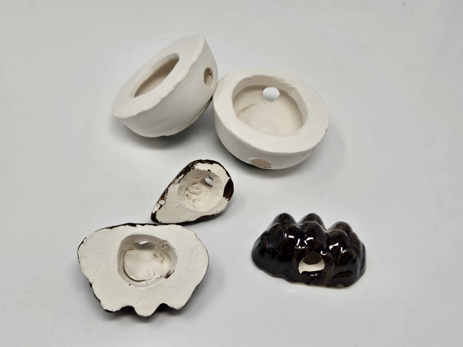 Set of Vintage Green Ceramic Owl Eyes with Beak Feet Beads for Macrame Owl