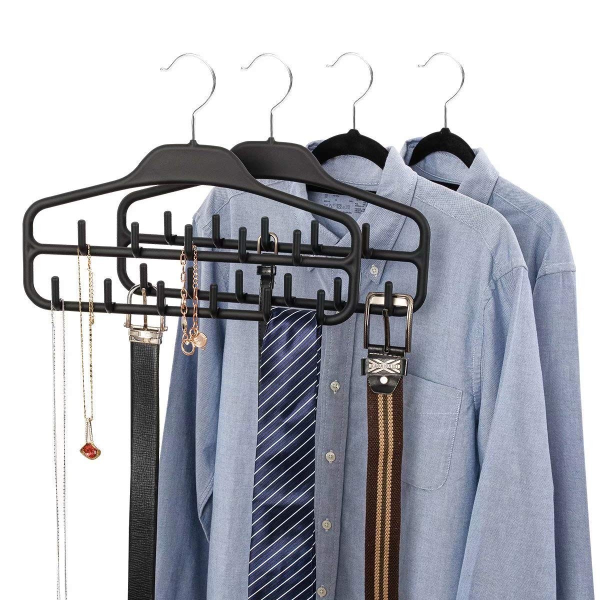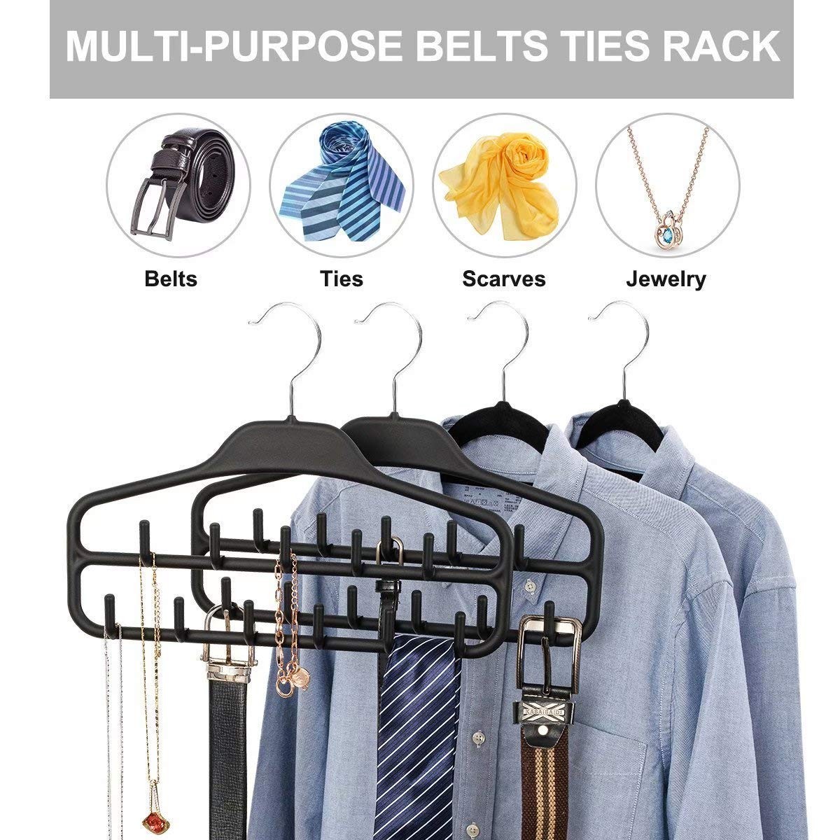 FairyHaus Belt Hanger Organizer 2 Pack, Non Slip Tie Rack 1.2x0.3 inch, Black