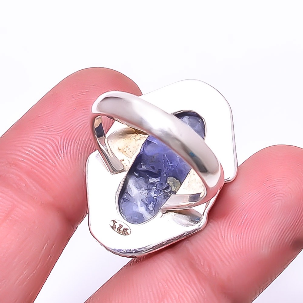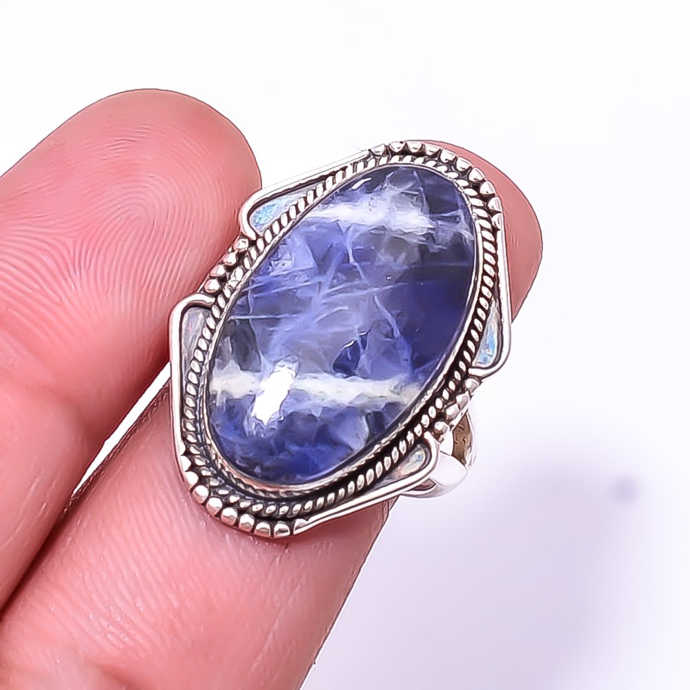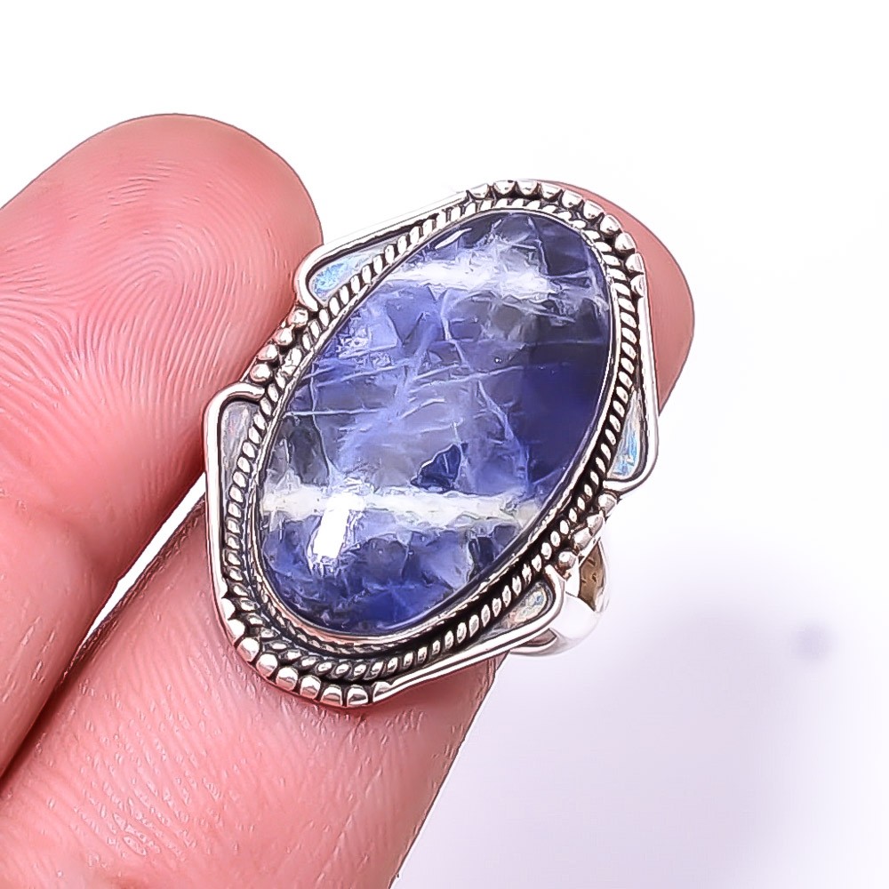 как выглядит Natural Sodalite Oxidised 925 Sterling Silver Ring S.8 R30, Christmas Gift фото