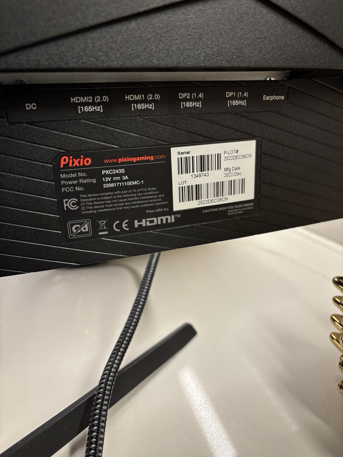 Pixio PXC243S 24 Curved Monitor 165Hz HDMI 2.0 DisplayPort 1.4 Black