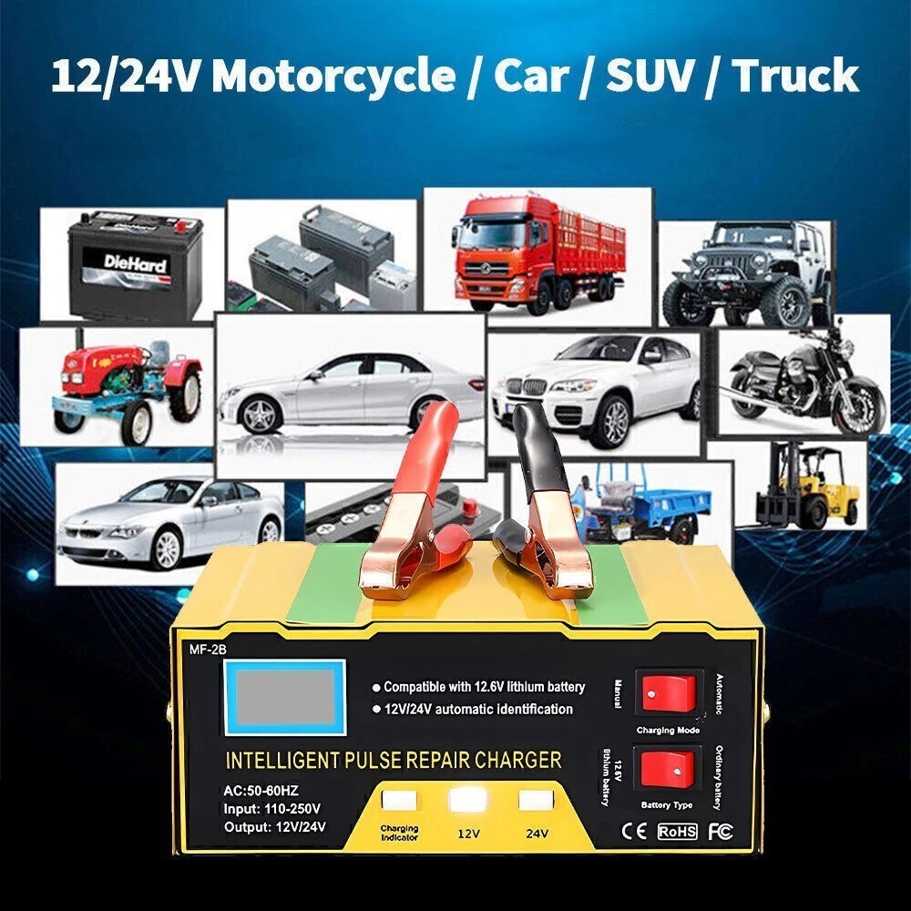 Car Battery Charger Heavy Duty 12V/ 24V Smart Automatic Intelligent Pulse Repair