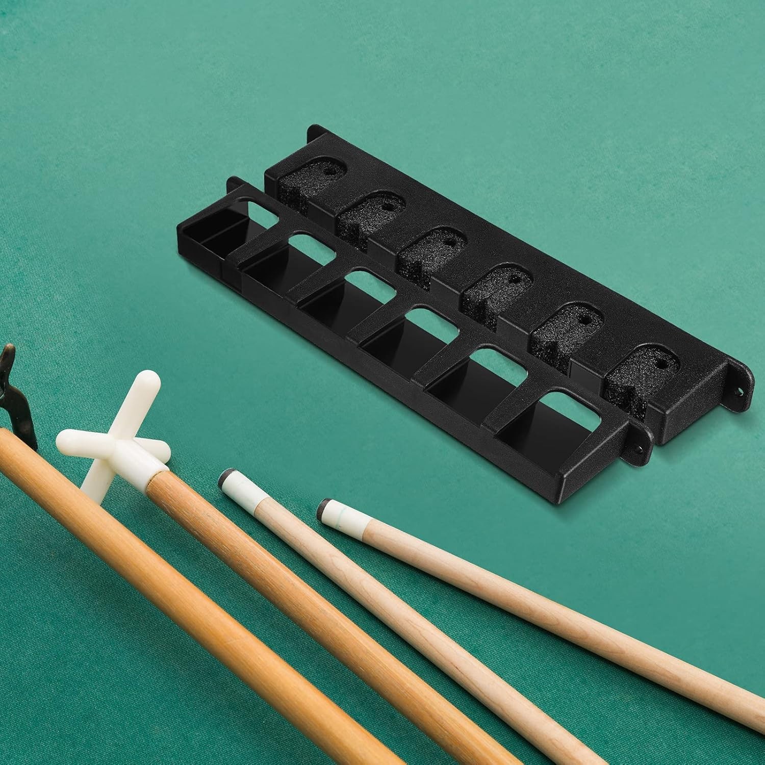 как выглядит Skylety 2 Pieces Pool Stick Holder Pool Cue Rack for 6 Cue Wall Mounted Table St фото