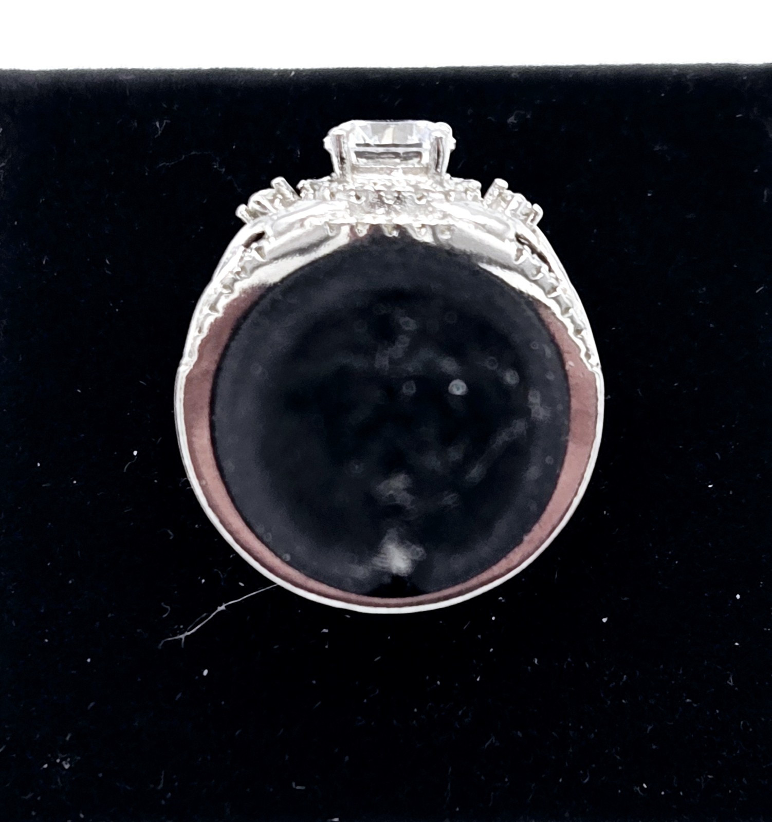 VTG Sterling Silver Clear Gemstones Inlay Engagement Statement Ring - Sz 7 -4.8g