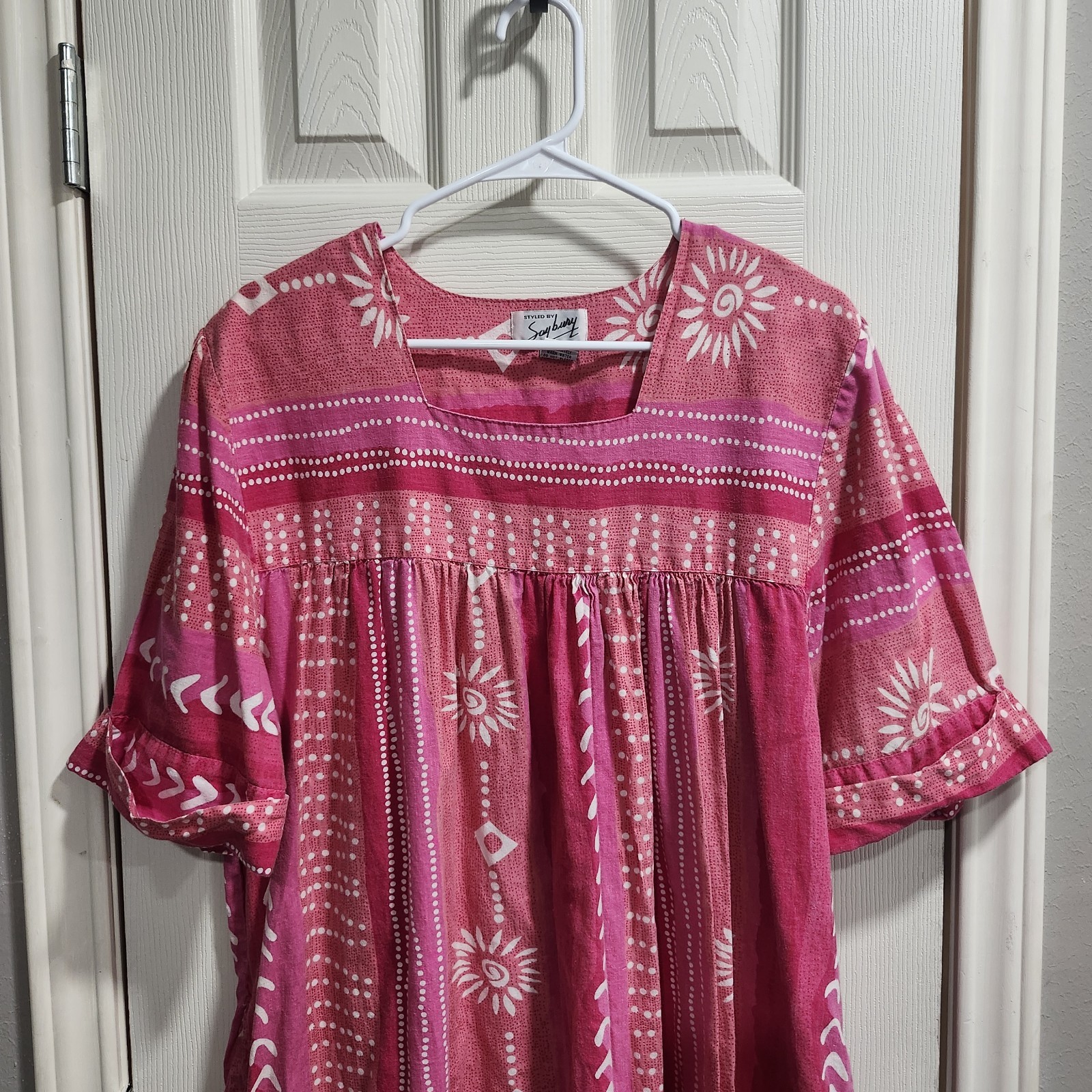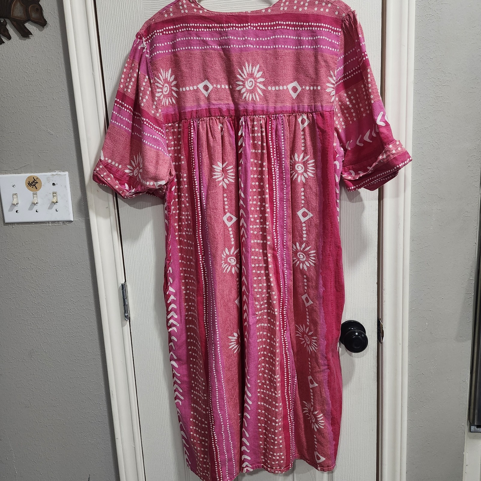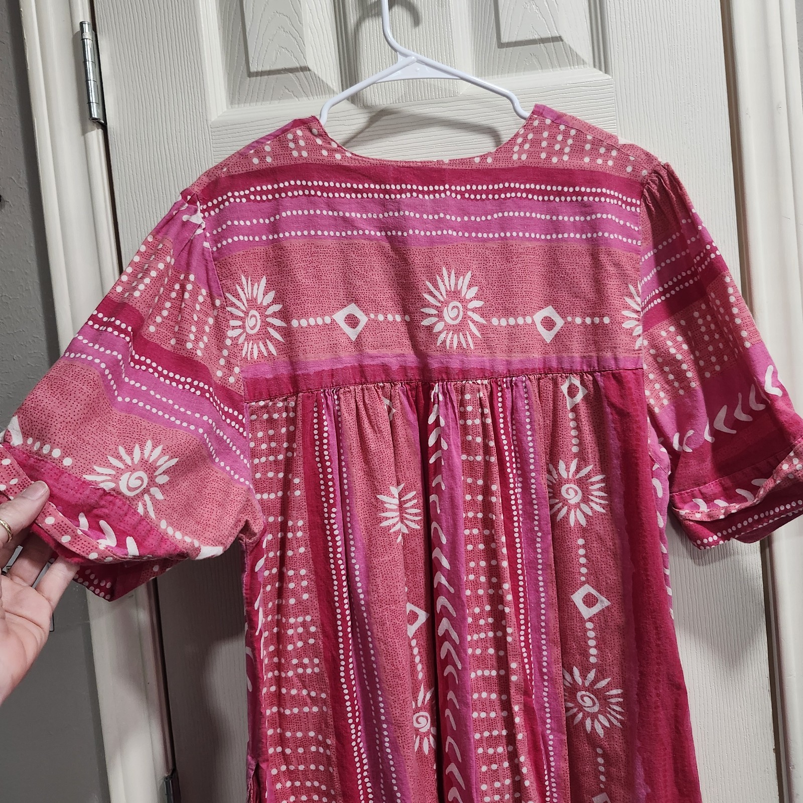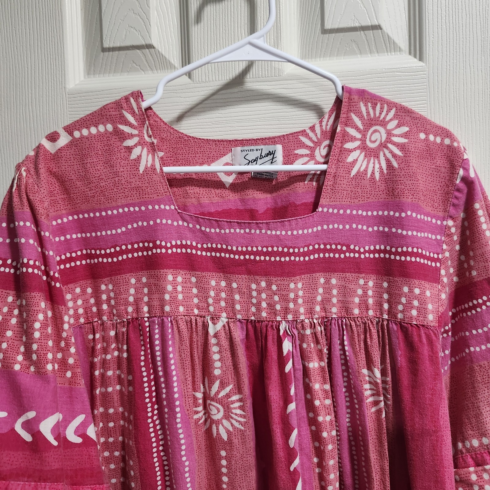 как выглядит Vintage Saybury 1X Pink Cotton Muumuu Dress Boho Floral House Dress Pockets фото