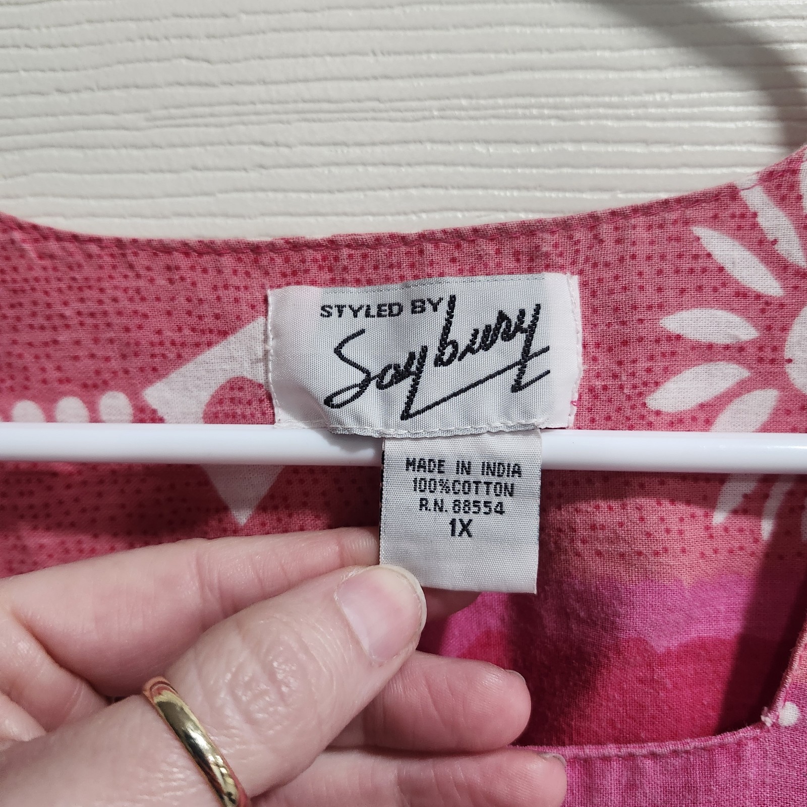 Vintage Saybury 1X Pink Cotton Muumuu Dress Boho Floral House Dress Pockets