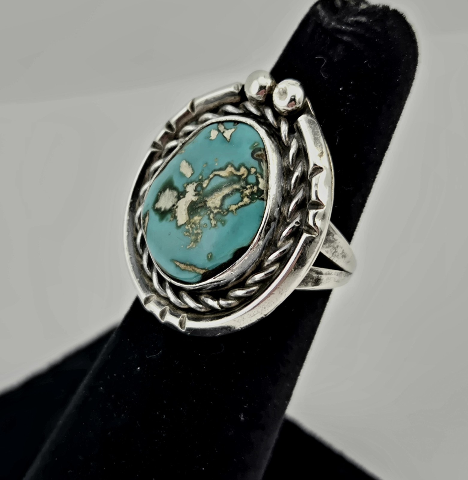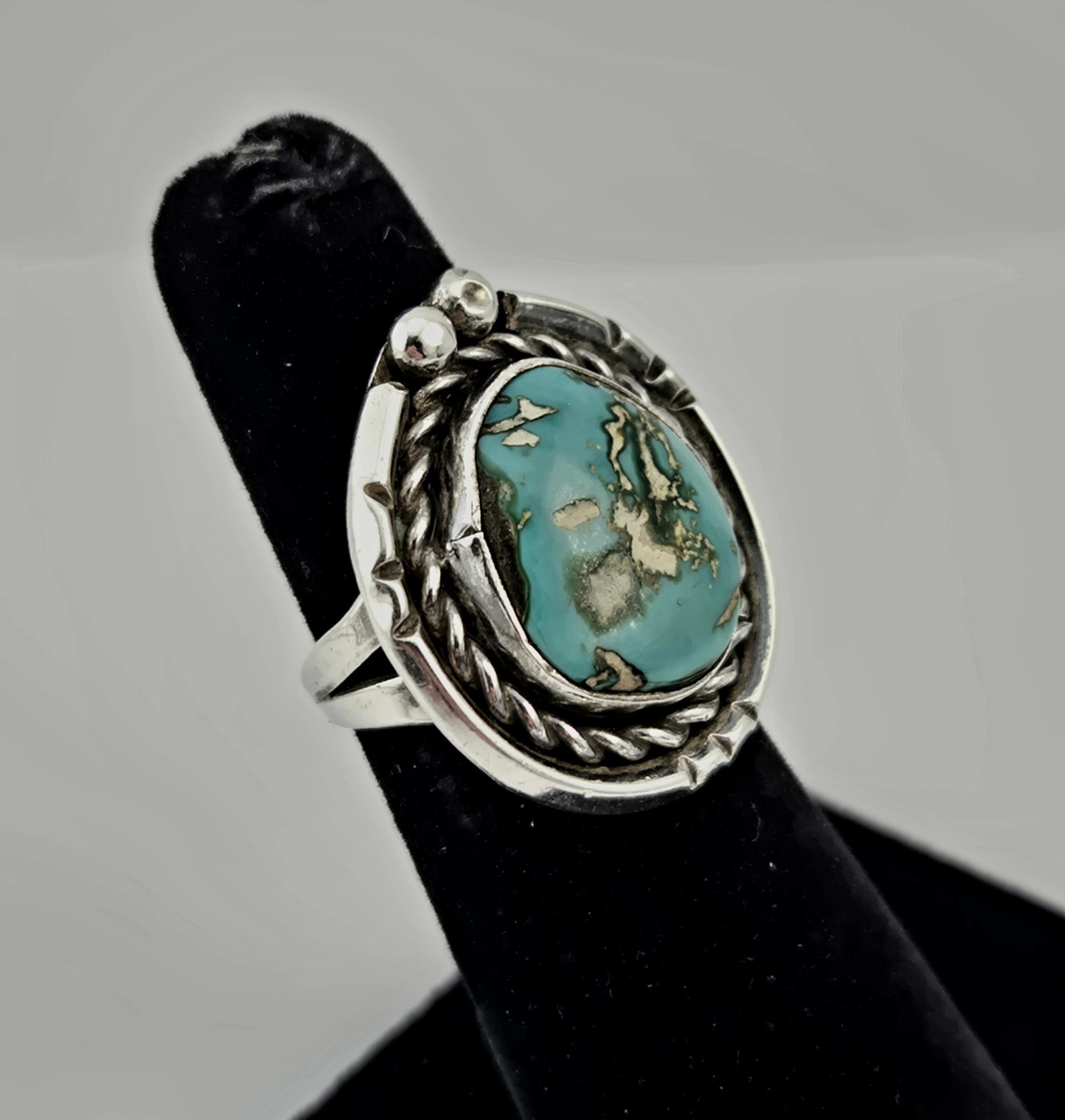 Vintage Sterling Silver Turquoise Cabochon Native Ring Size 5 Southwestern 8.2g