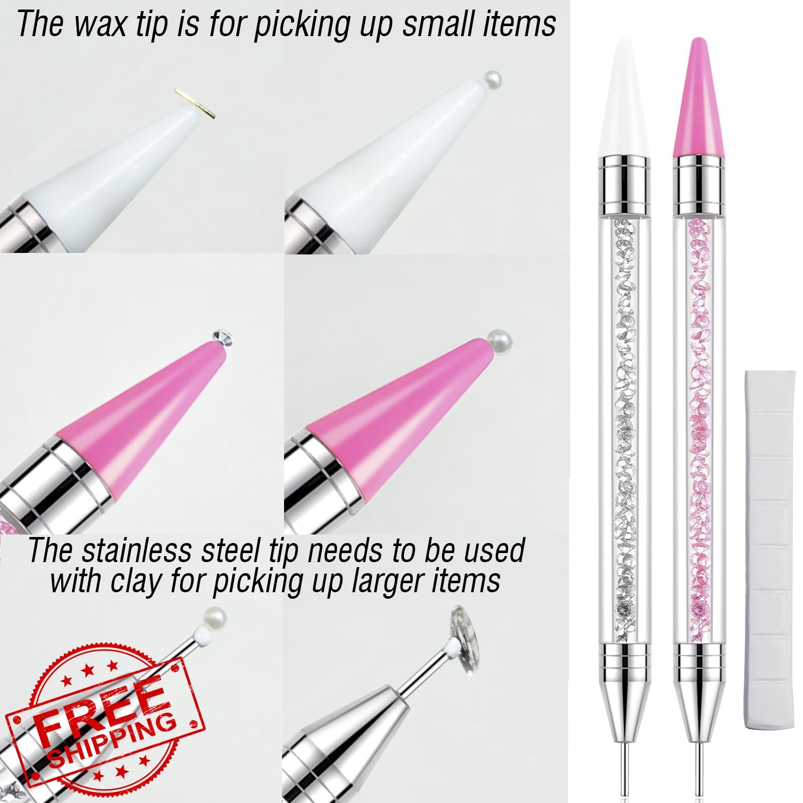 LIGHT RAIN Rhinestone Picker Tool Kit Dual Head Wax Clay Tweezers