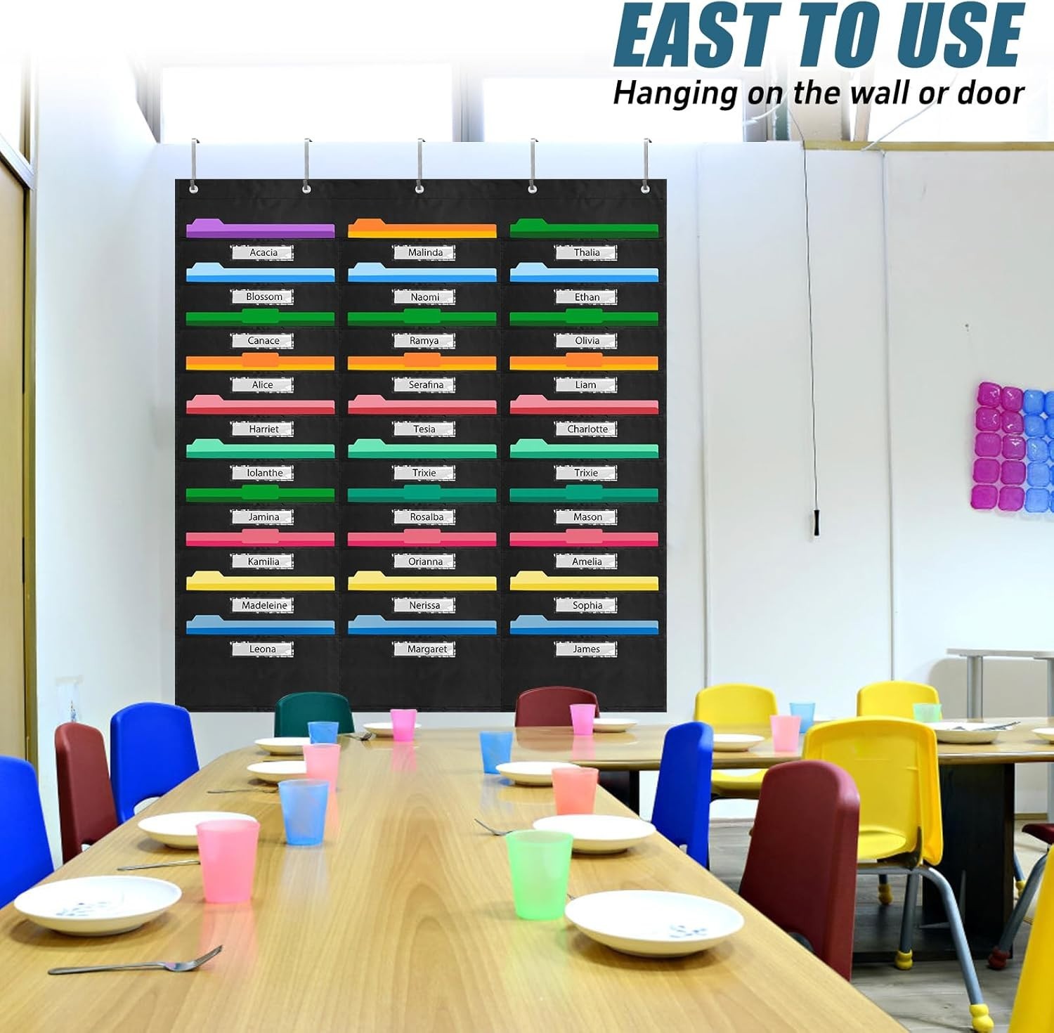 File Storage Pocket Chart with Nametag 30 Pockets,Hanging Wall File Organizer