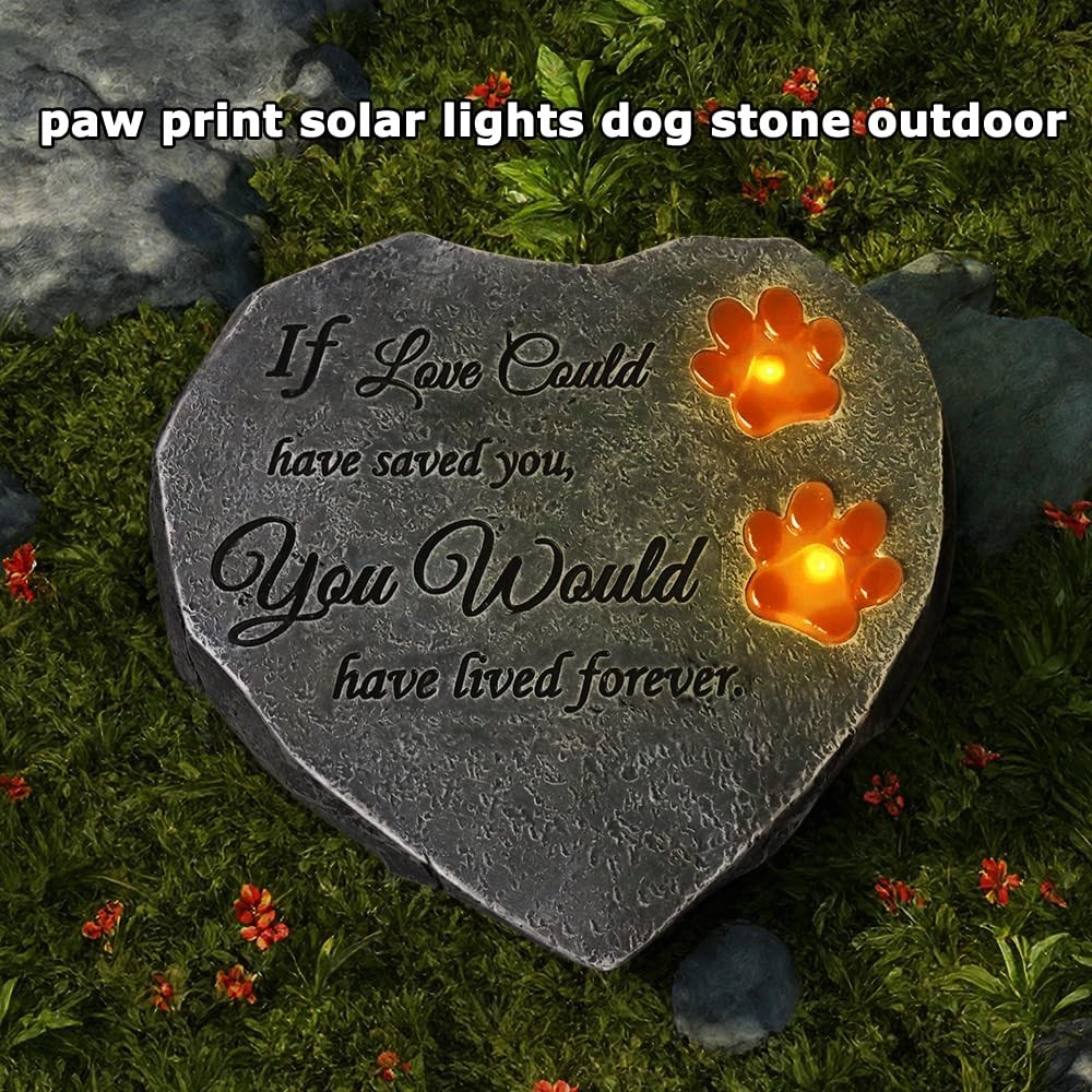 Solar Light Pet Memorial Stones Heart Shaped Dog Grave Markers Outdoor, Shinn...