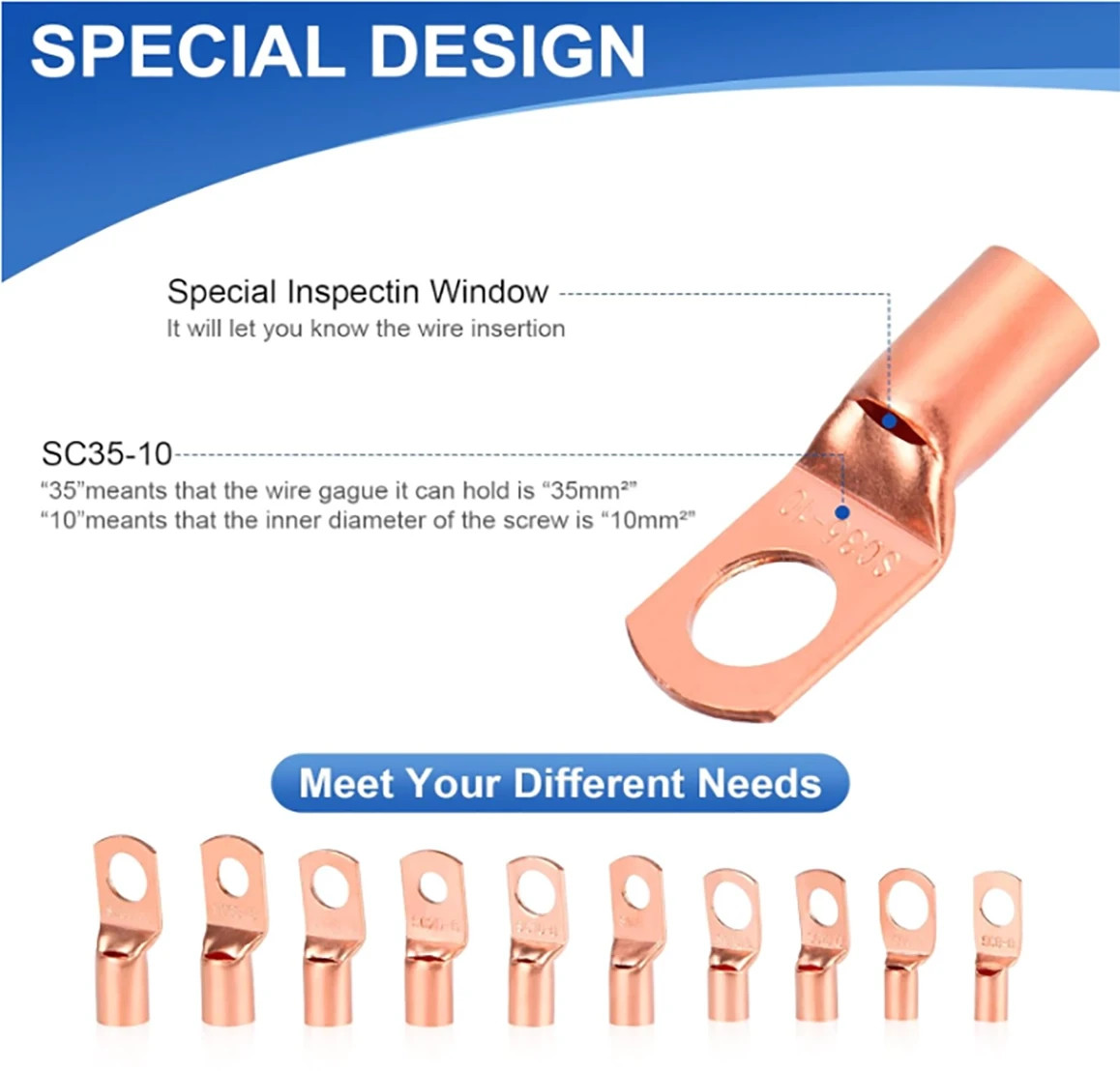 Copper Battery Cable Ends Wire Lugs Assortment Kit AWG 2 4 6 8 10 Gauge 150pcs
