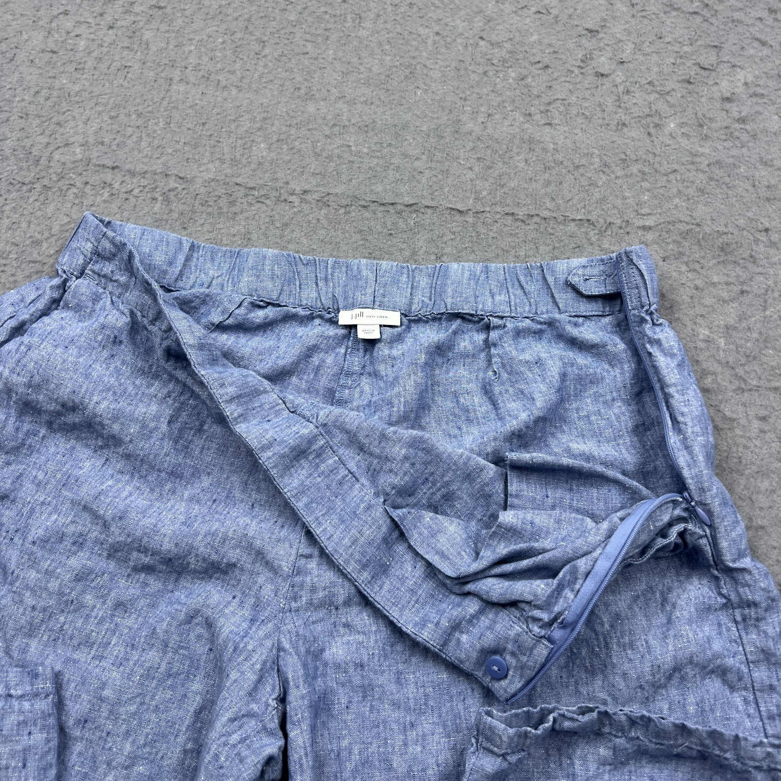 как выглядит J Jill Love Pants Womens Large Blue 100 Linen Wide Leg Crop Woven Lagenlook фото