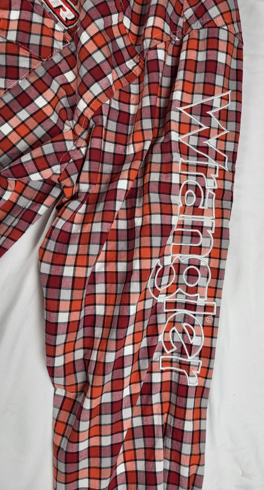PBR Wrangler Shirt Men's Large Red Pearl Snap Long Sleeve Western Cowboy Rodeo