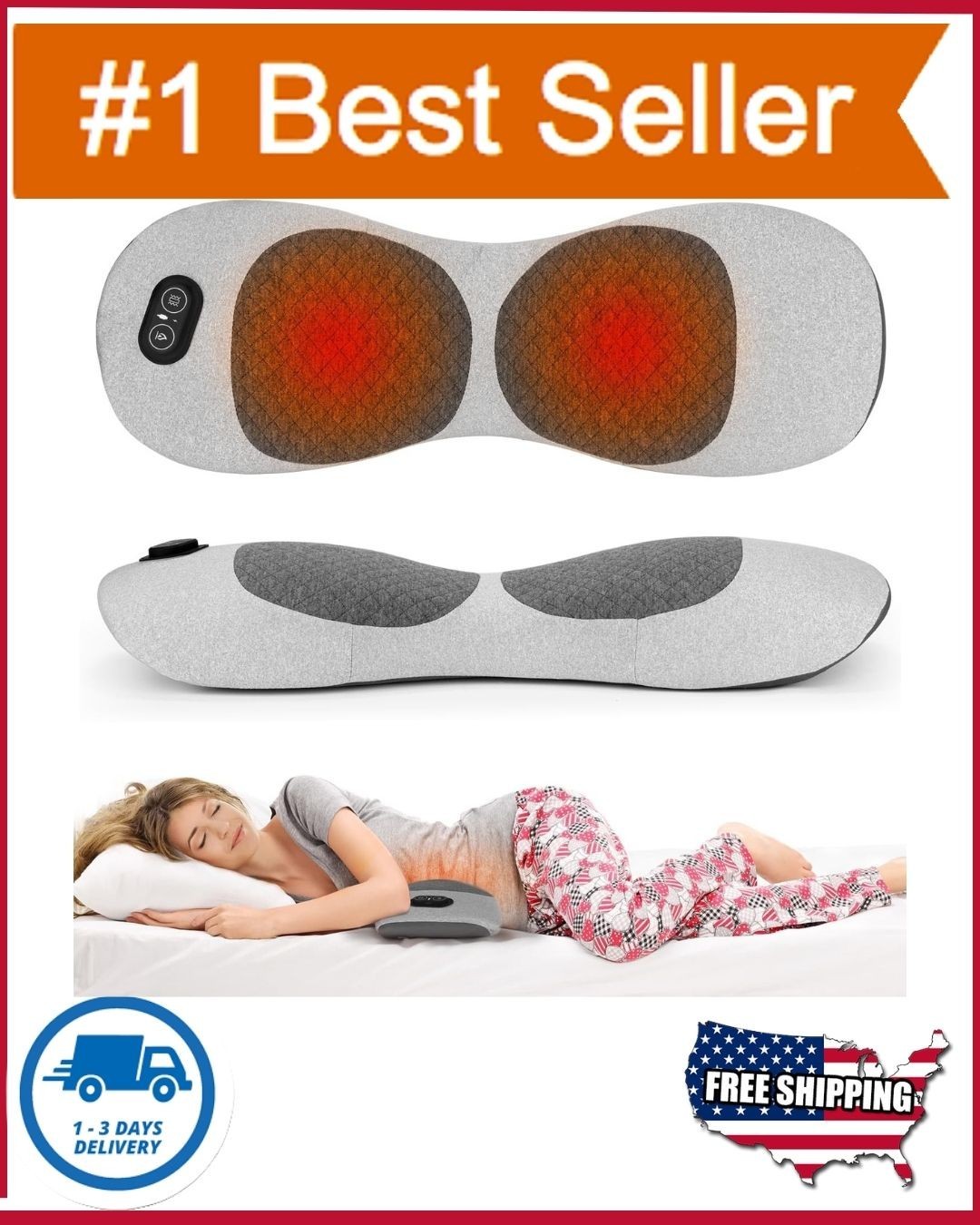 3 In 1 Electric Lumbar Support Pillow Smooth Spine Triple Fusion Back Massager