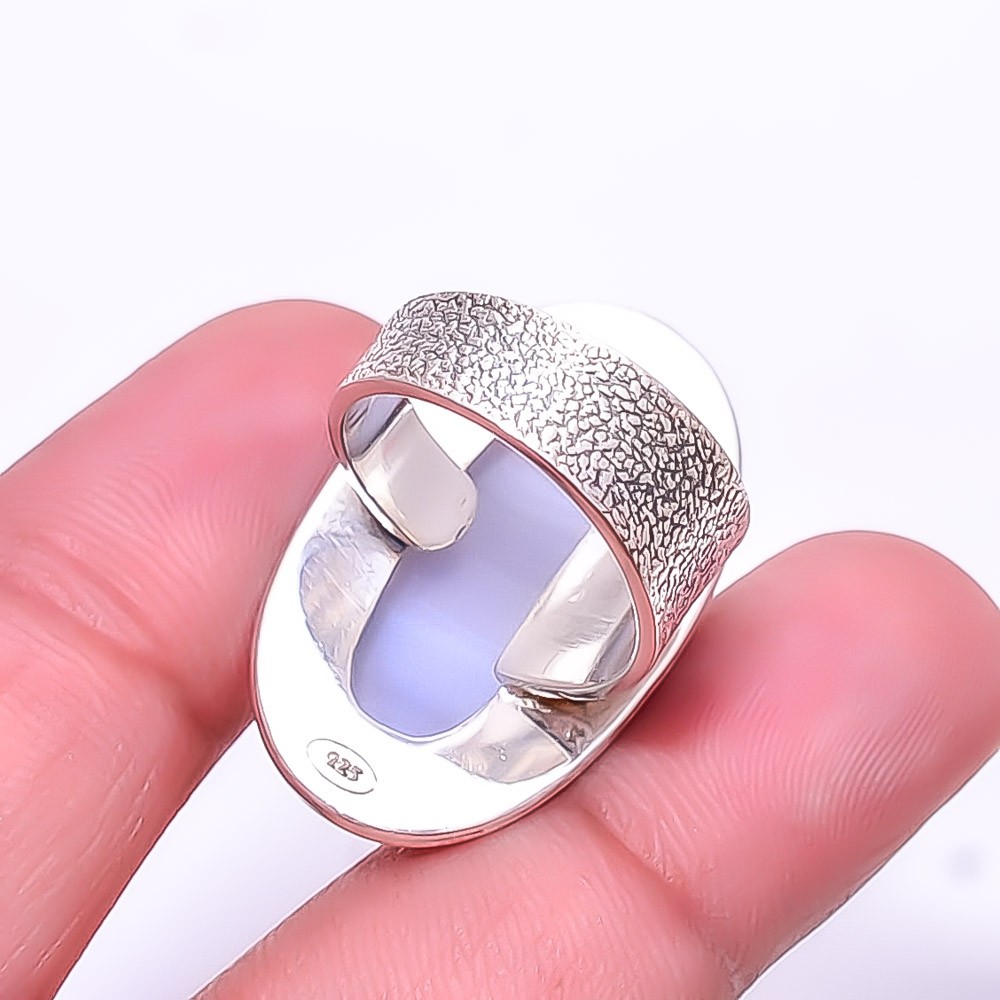 как выглядит Blue Lace Agate - Namibia 925 Sterling Silver Ring S.6.5 R17, Christmas Gift фото