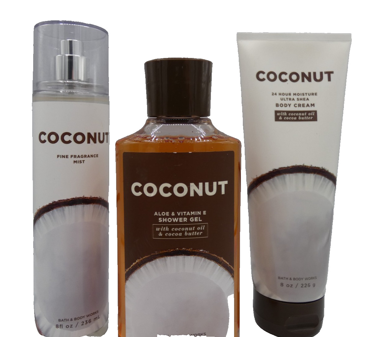 Bath Body Works COCONUT BODY MIST SHOWER GEL BODY CREAM 3 Piece Set