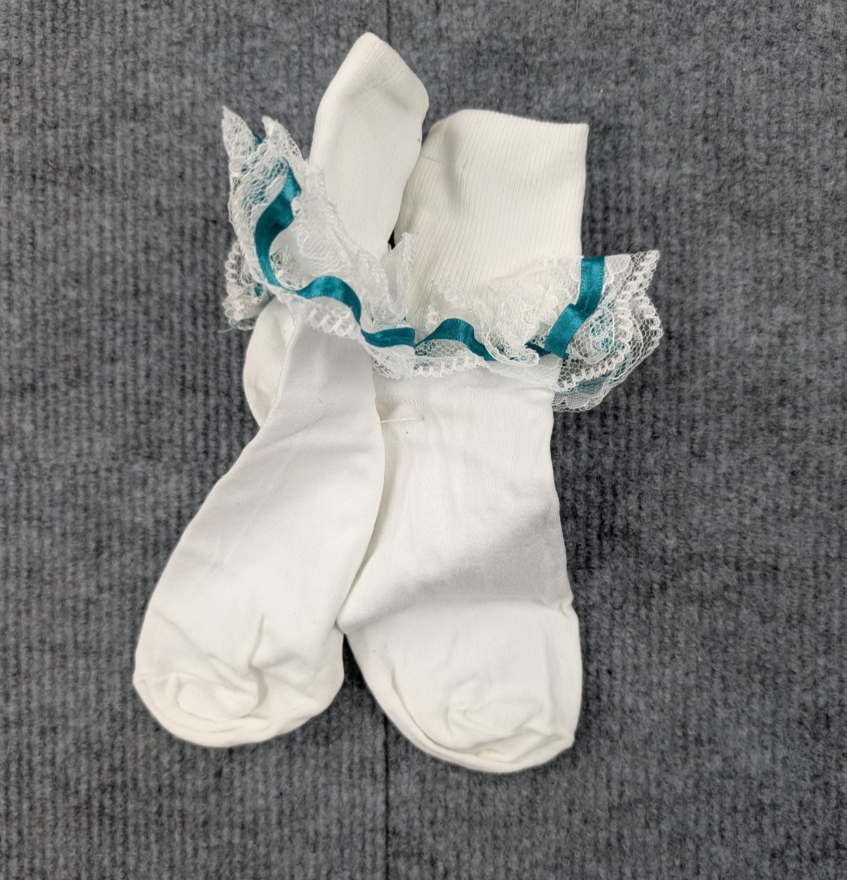 Vintage Lace Ruffle Socks Womens 9-11 Nylon Coquette White Teal Light Girly Y2K