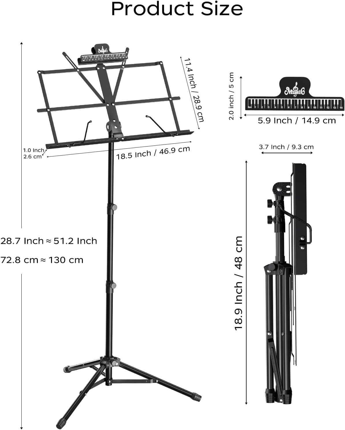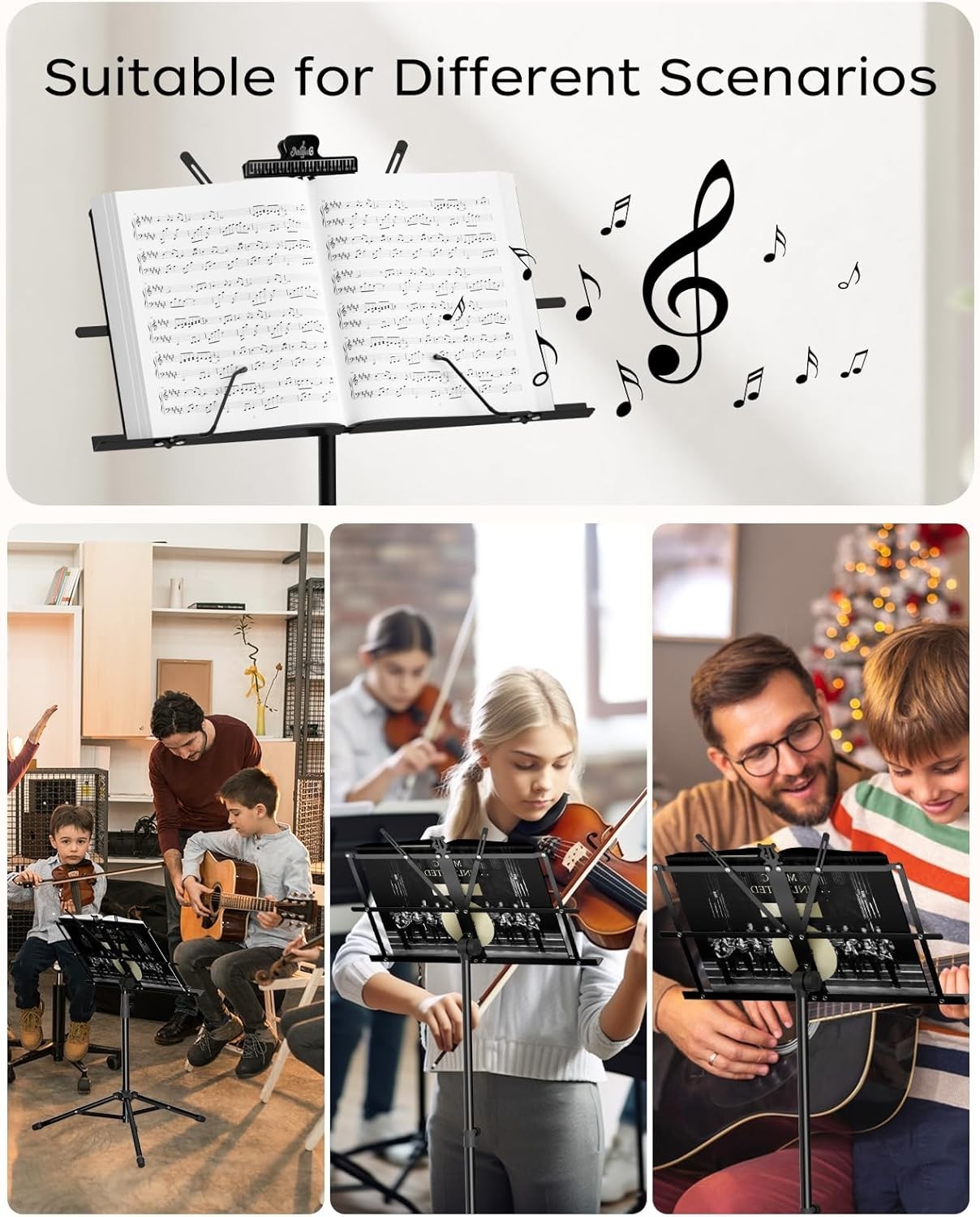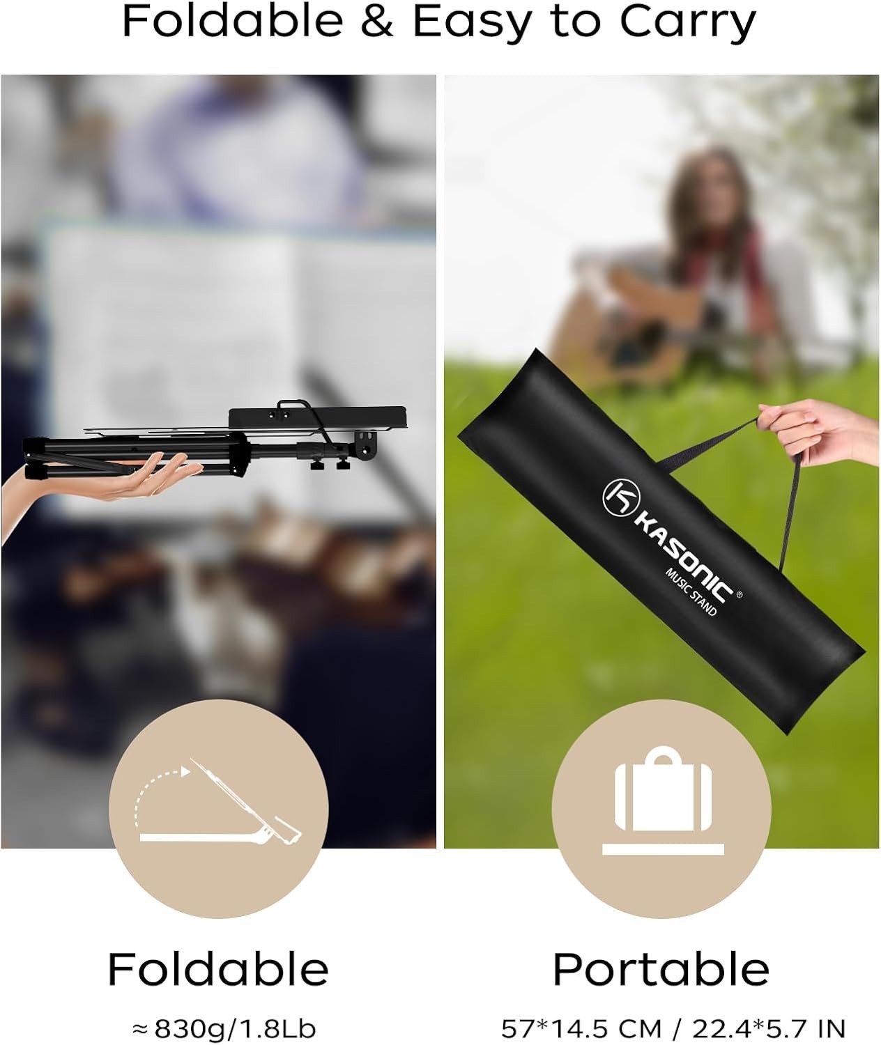 Portable 2 in 1 Folding Music Stand with Carrying Bag - Adjustable Metal Design