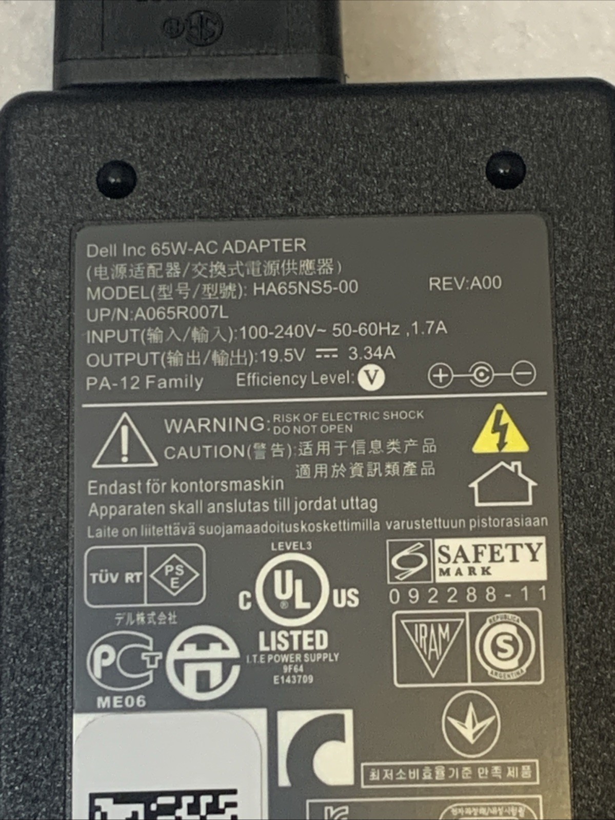 Dell Laptop 20V USB-C AC Adapter - 65W HA65NM190
