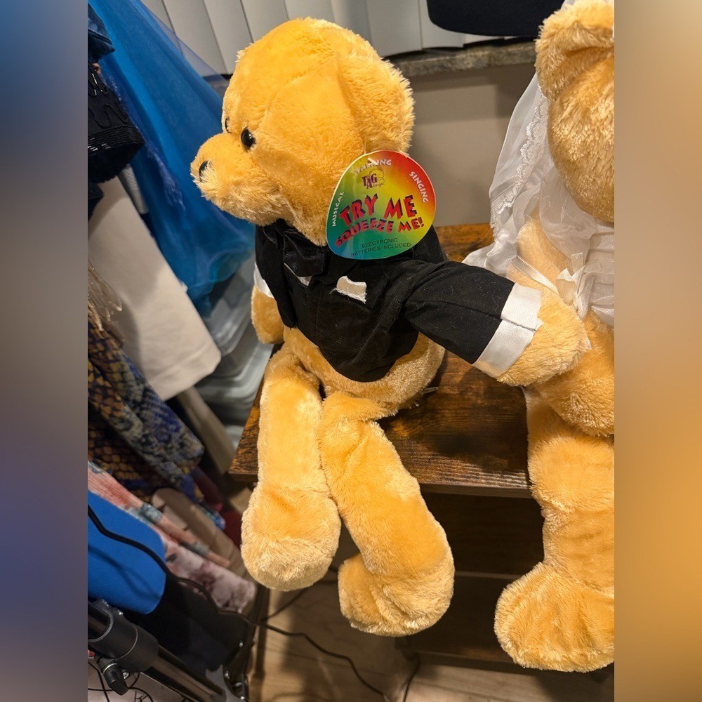 как выглядит PBC Vintage Bride Groom Bear Animated Singing Plush Doll Sings фото