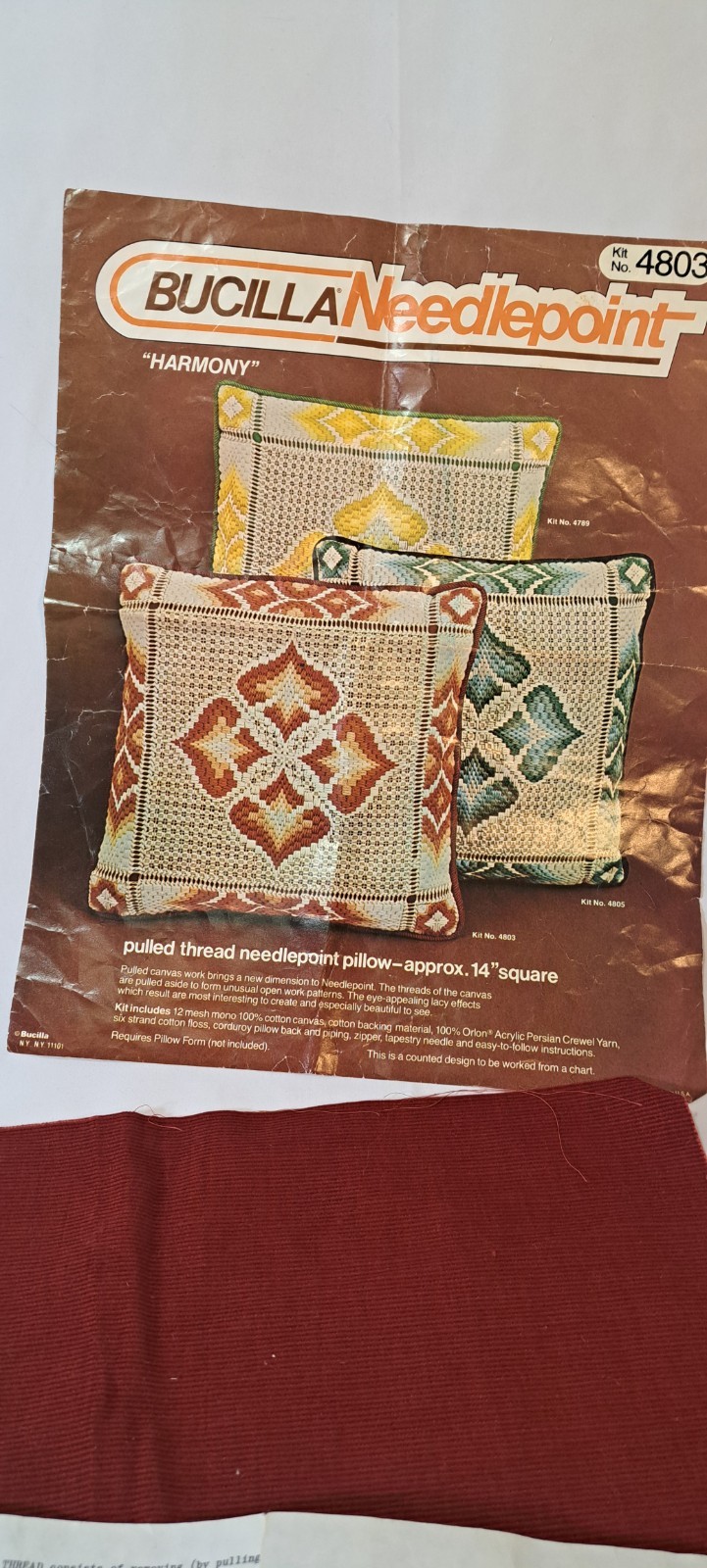 как выглядит Vtg Bucilla Needlepoint Pillow Kit 4803 Pulled Thread 14" Harmony BOHO фото