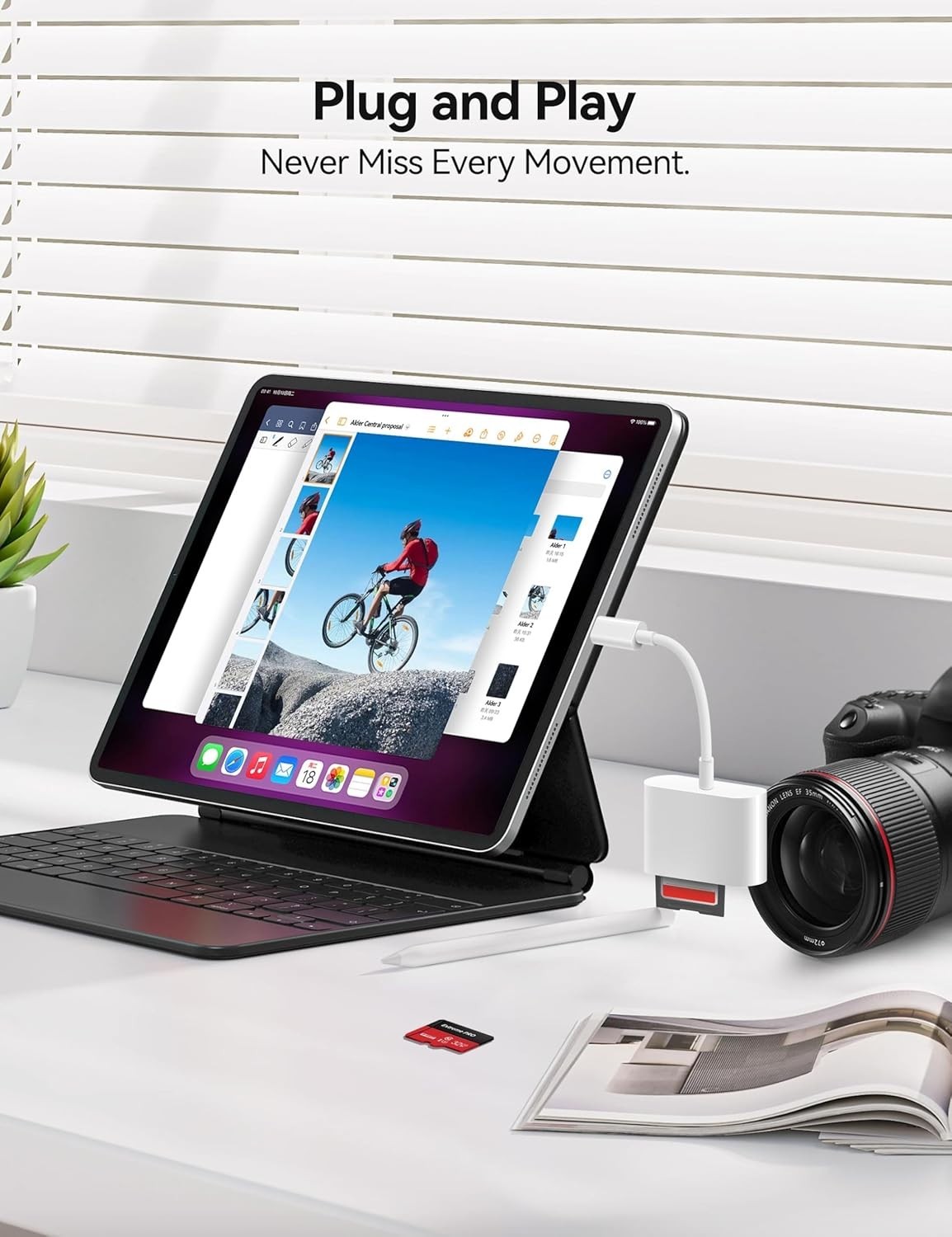 Lector de tarjetas SD USB C para iPhone 15, 16, iPad y Mac. Adaptador de tarjeta