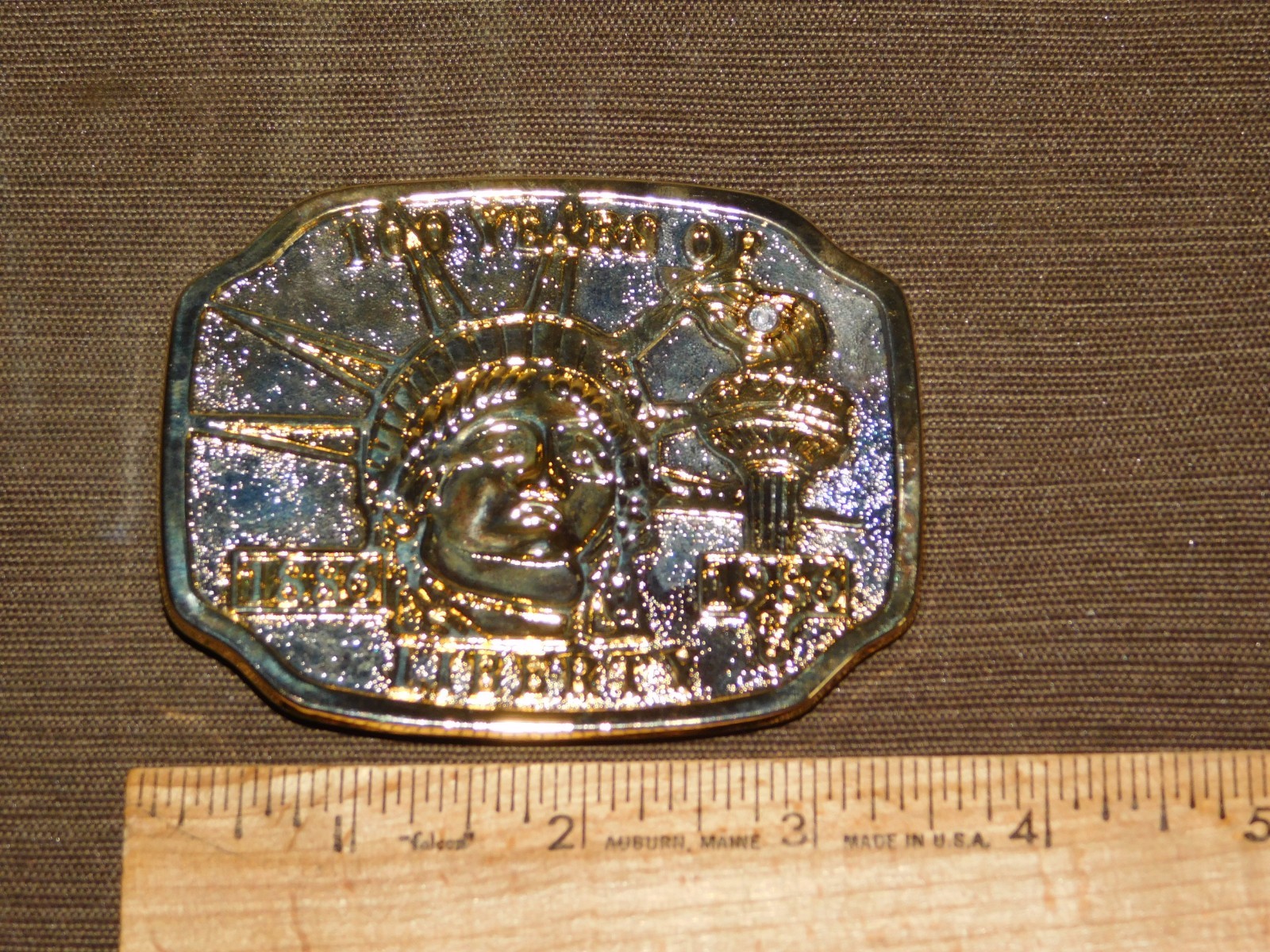 как выглядит 1886 1986 100 YEARS STATUE OF LIBERTY BELT BUCKLE фото