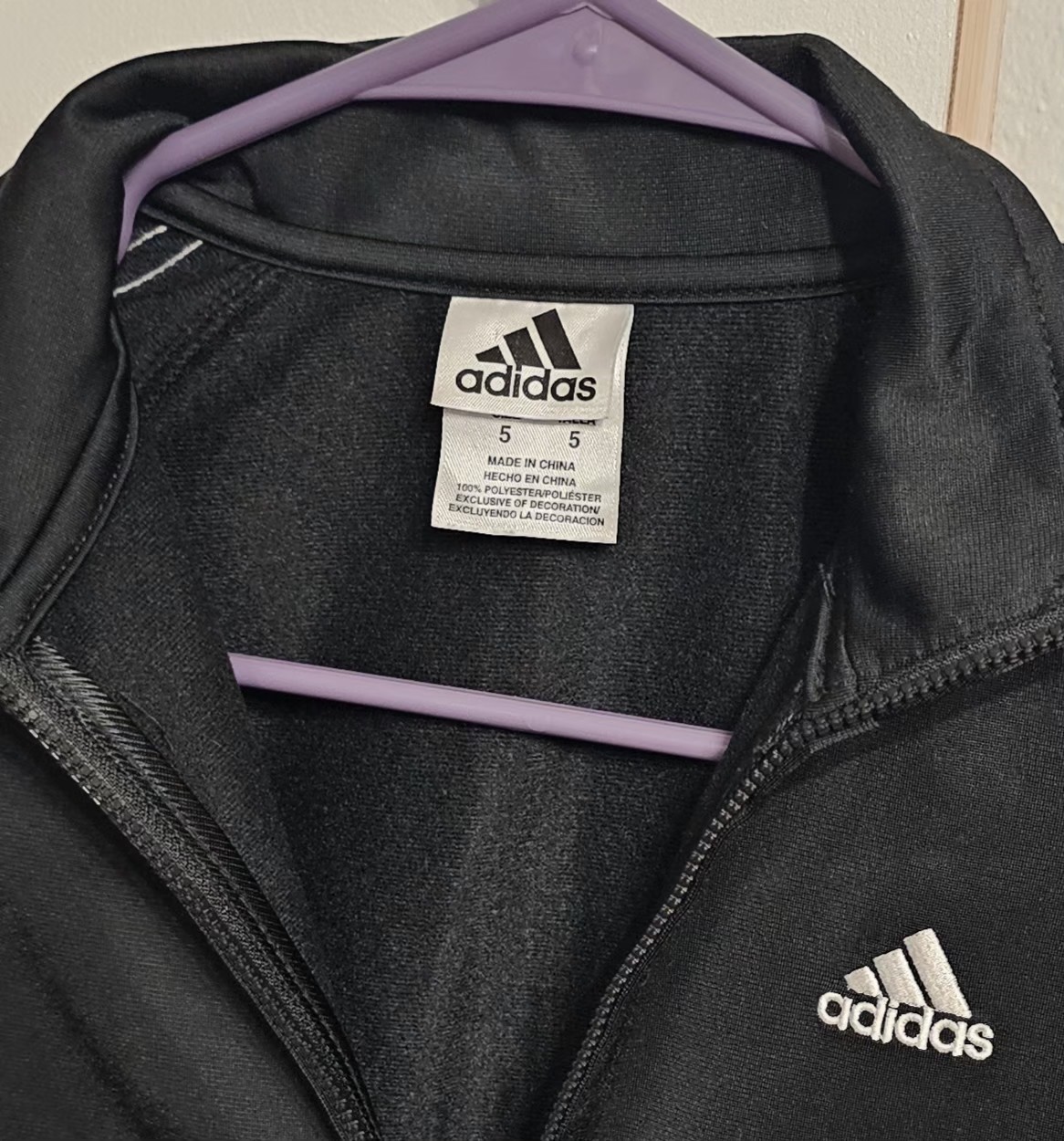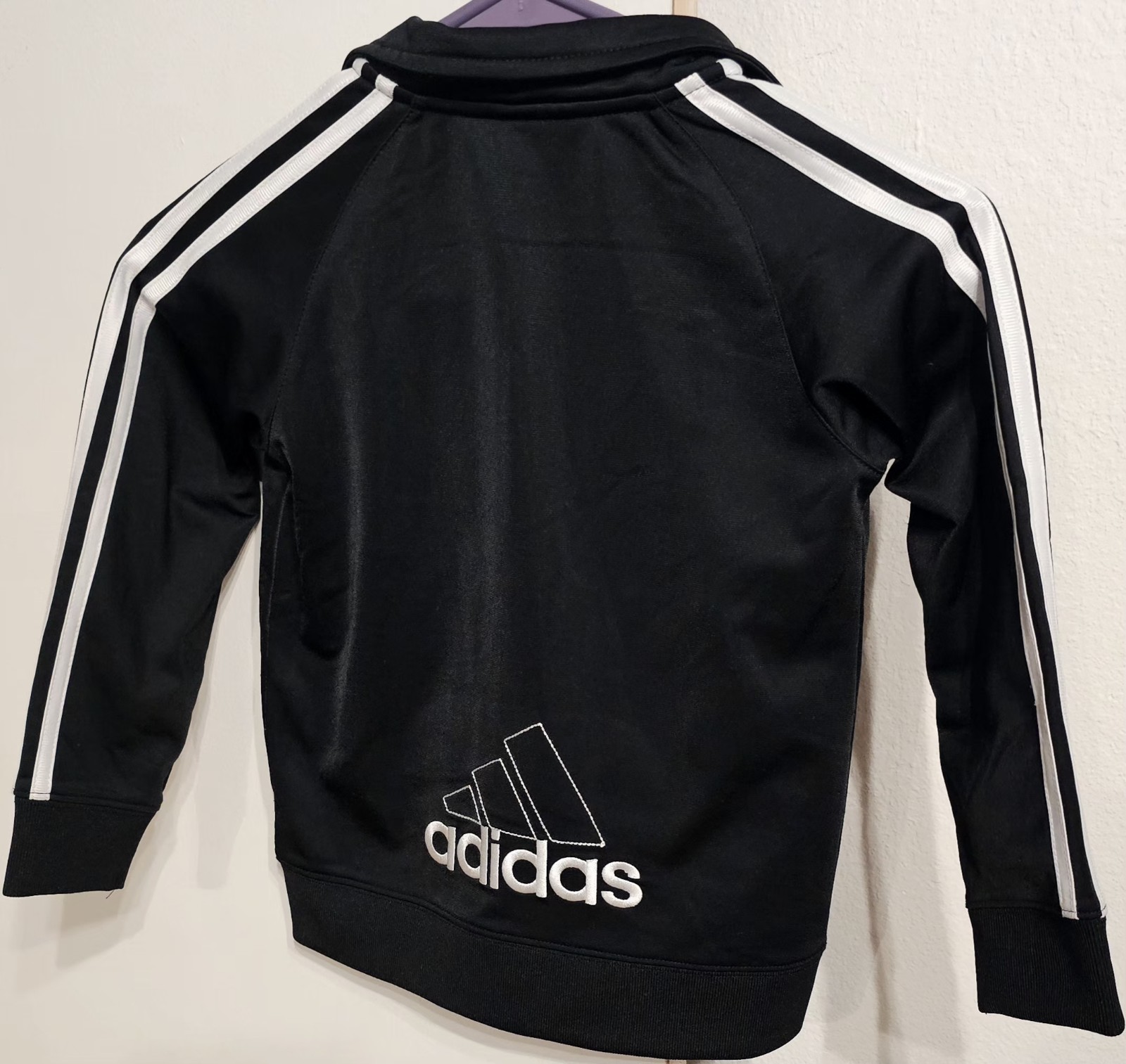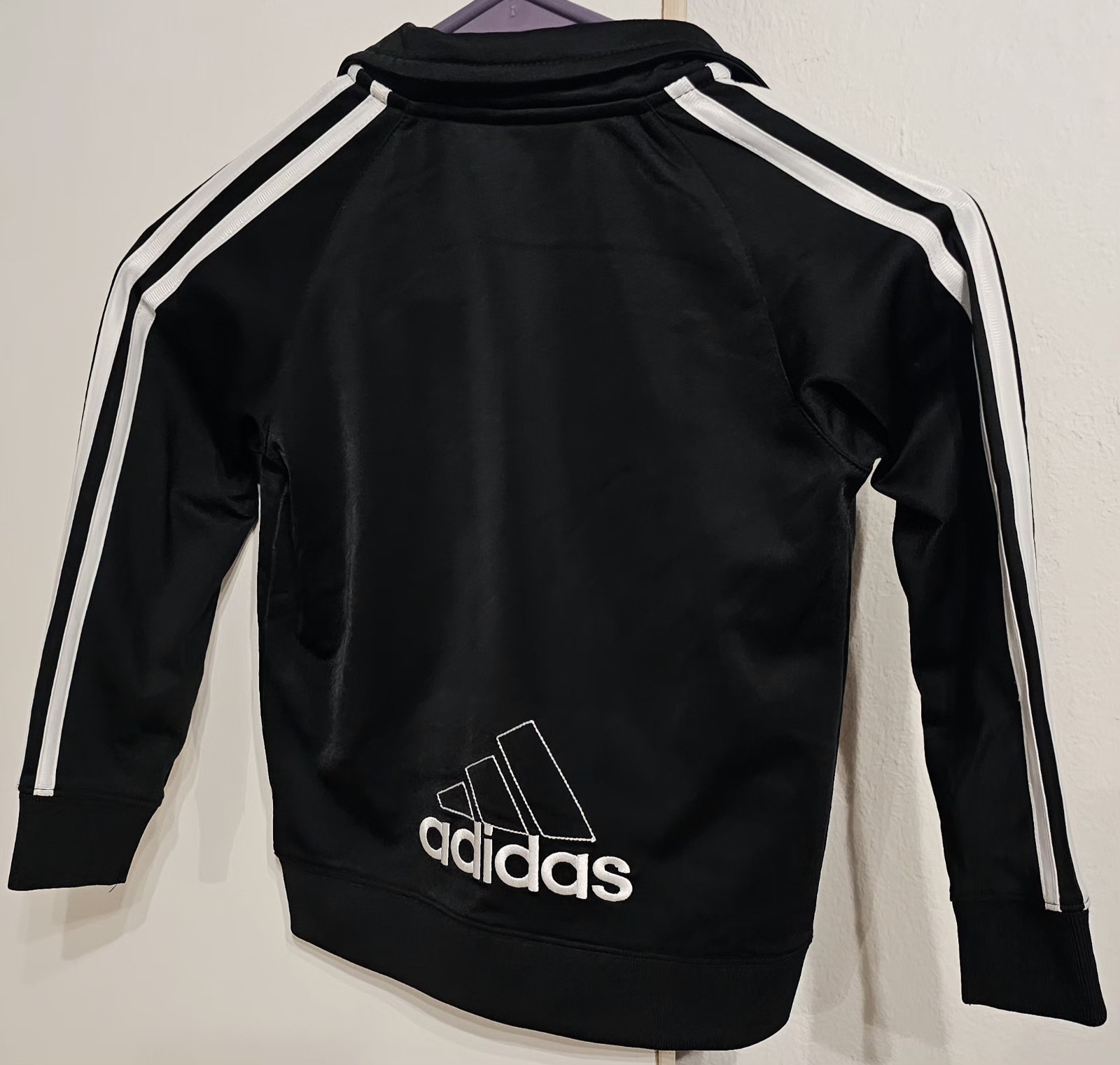 Adidas Boys Track Jacket Size 5 Black White 3 Stripe Full Zip Coat Toddler Kids