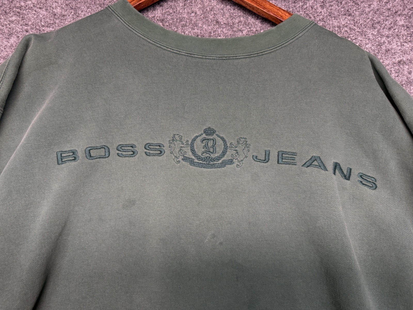 как выглядит Y2K 90s Boss Jeans Hunter Green Crewneck Sweatshirt Unisex Casual Embroidered XL фото