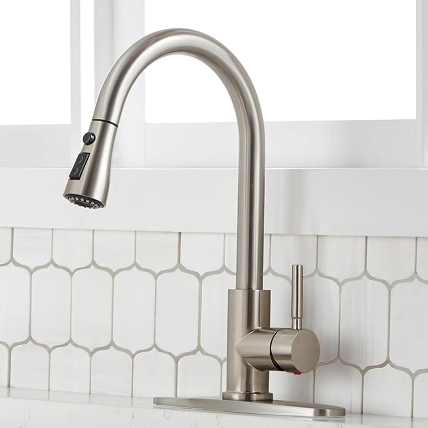 Luxury Brushed Nickel Kitchen Faucet with Pull Down Sprayer 3 Functions