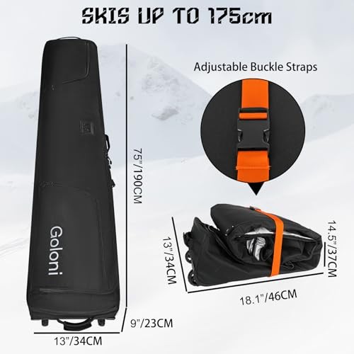 Ski Bag with Wheels,Padded Snowboard Bag for Air Travel,600D 175cm Black