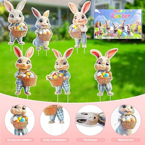 16 PCS Easter Bunny Decorations Outdoor, Easter Yard Signs Bunny and Eggs with