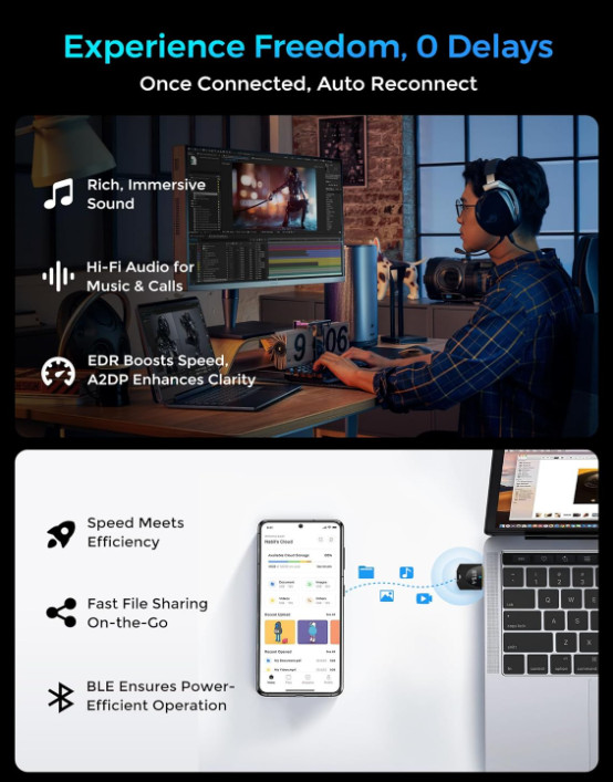 5.4 USB Bluetooth Adapter for PC, Dual Mode BLE EDR Plug Play, Up to 7 Devic